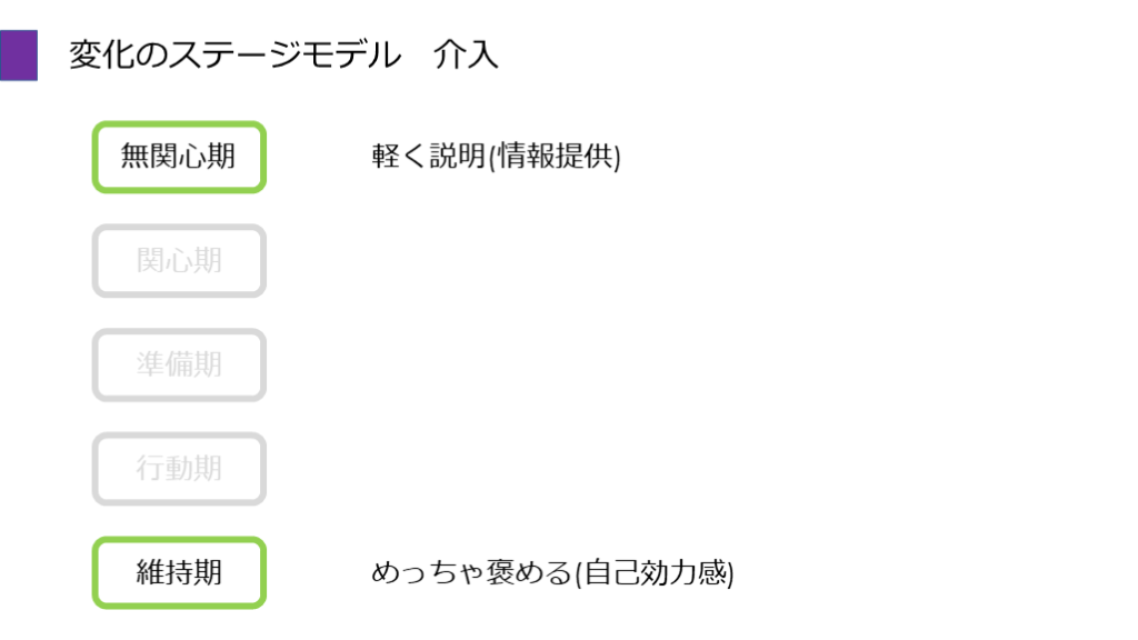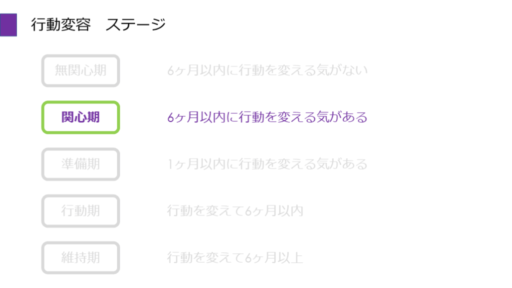 自信がない 関心期 関心期 情報提供 自己効力感
