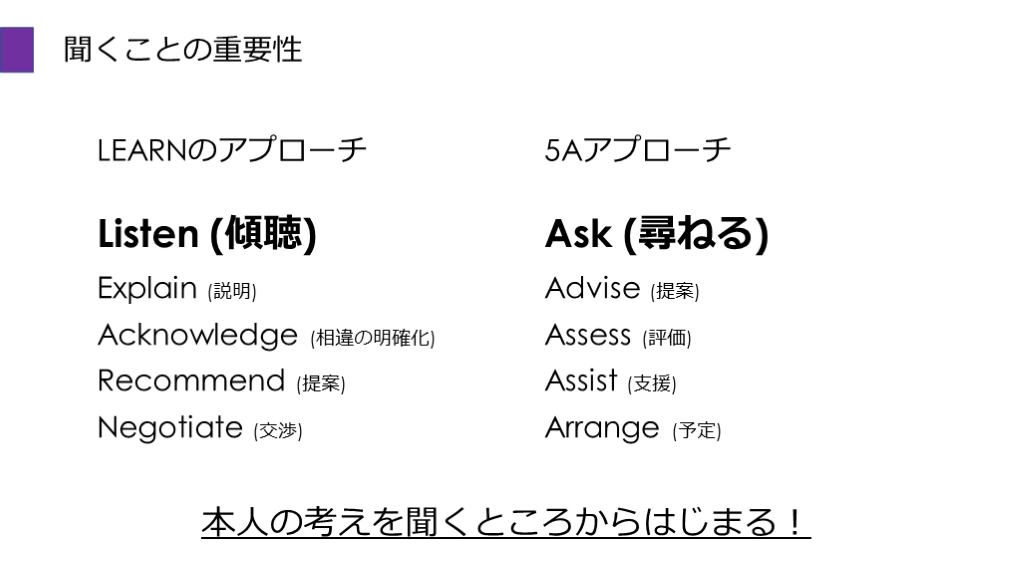 LEARNと5Aアプローチによる傾聴と提案
