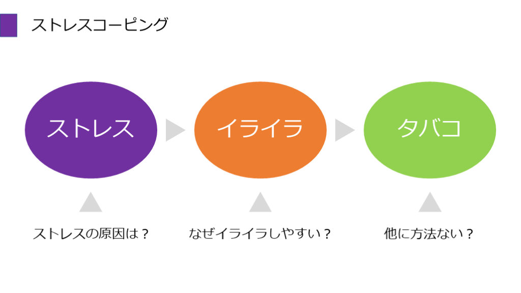 #36. ストレスコーピング ストレス イライラ タバコ ストレスの原因は? なぜイライラしやすい? 他に方法ない?