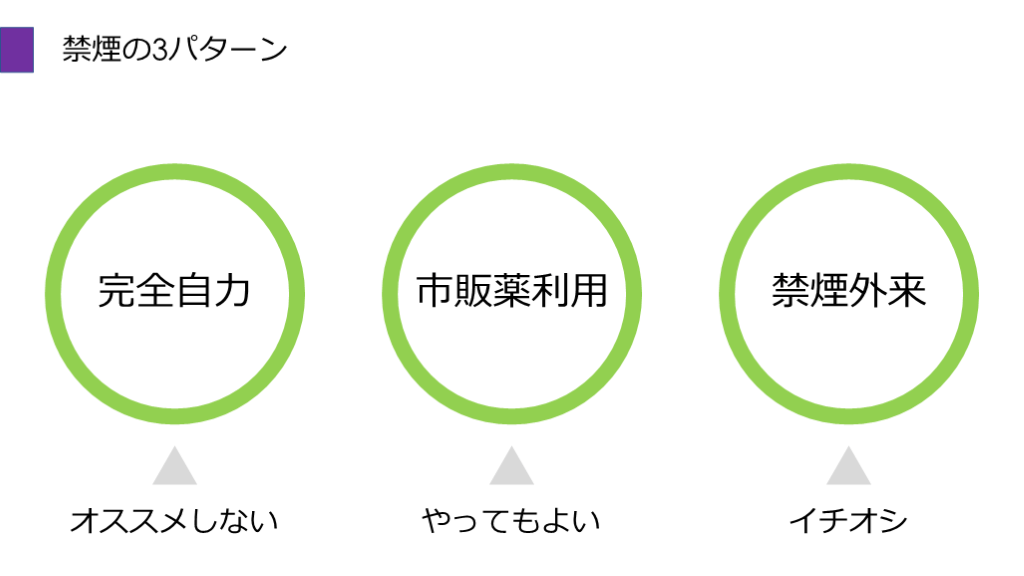 #39. 禁煙の3パターン 完全自力 市販薬利用 禁煙外来 オススメしない イチオシ やってもよい
