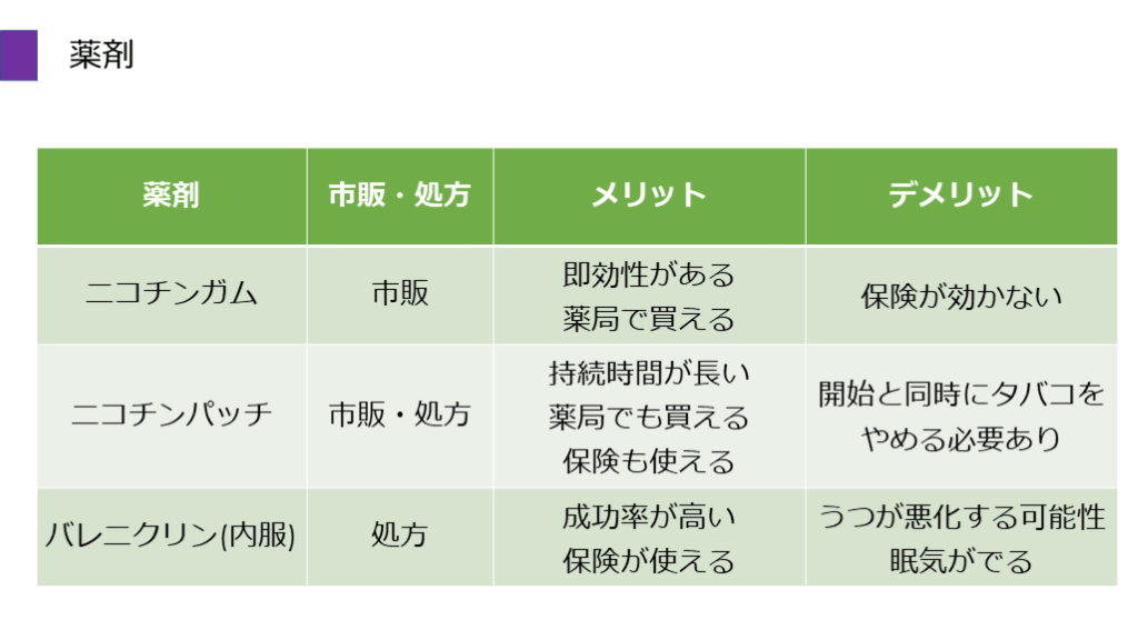 禁煙の方法と薬剤の比較