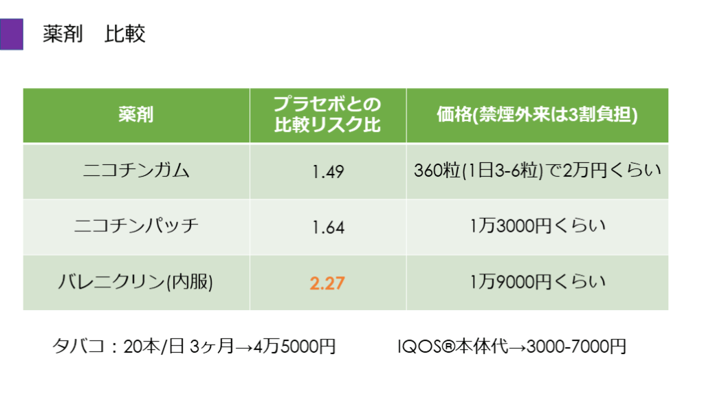 #43. 薬剤 市販薬の方がニコチン量が少ない+価格は禁煙外来とほぼ同じ 市販薬