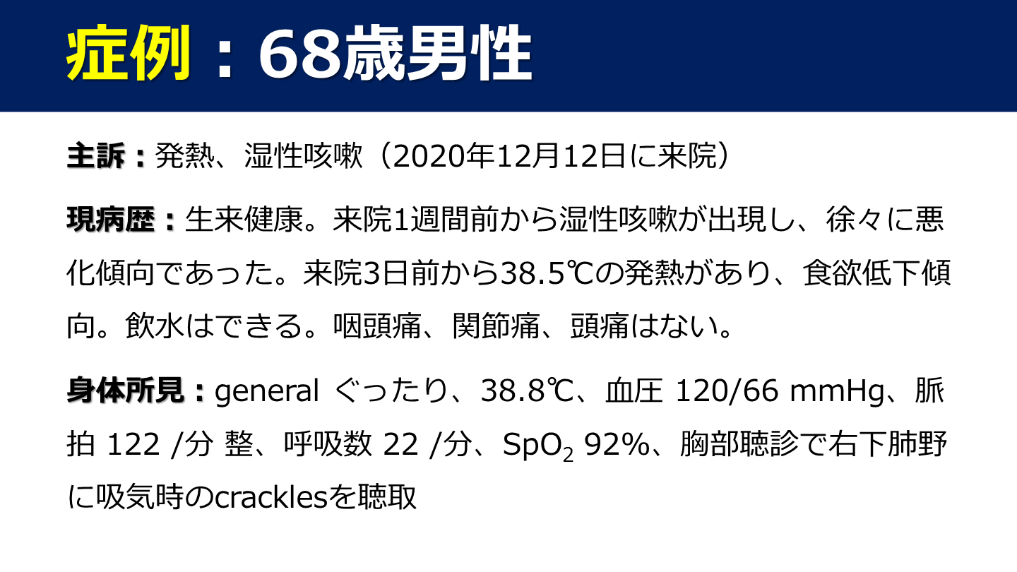 症例:68歳男性 主訴:発熱、湿性咳嗽(2020年12月12日に来院)