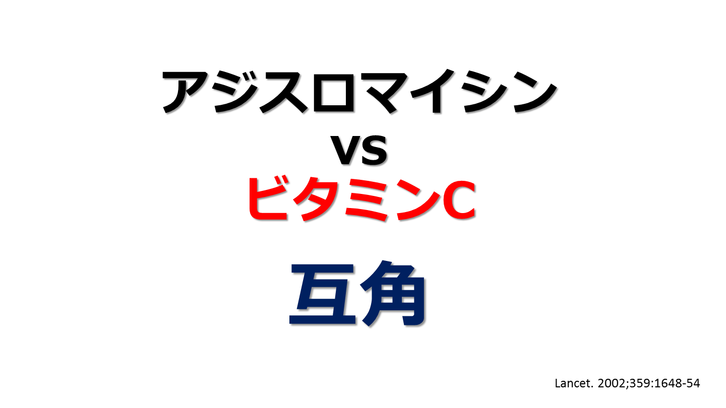 アジスロマイシン vsビタミンC 互角 Lancet. 2002;359:1648-54 #12.