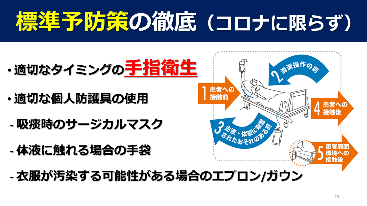 標準予防策の徹底(コロナに限らず) 適切なタイミングの手指衛生
