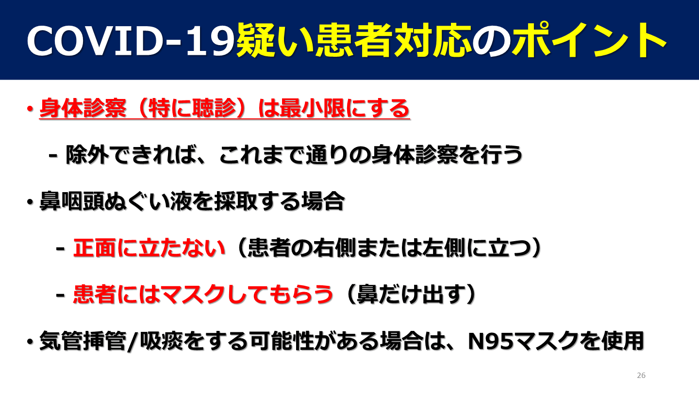 COVID-19疑い患者対応のポイント 身体診察(特に聴診)は最小限にする