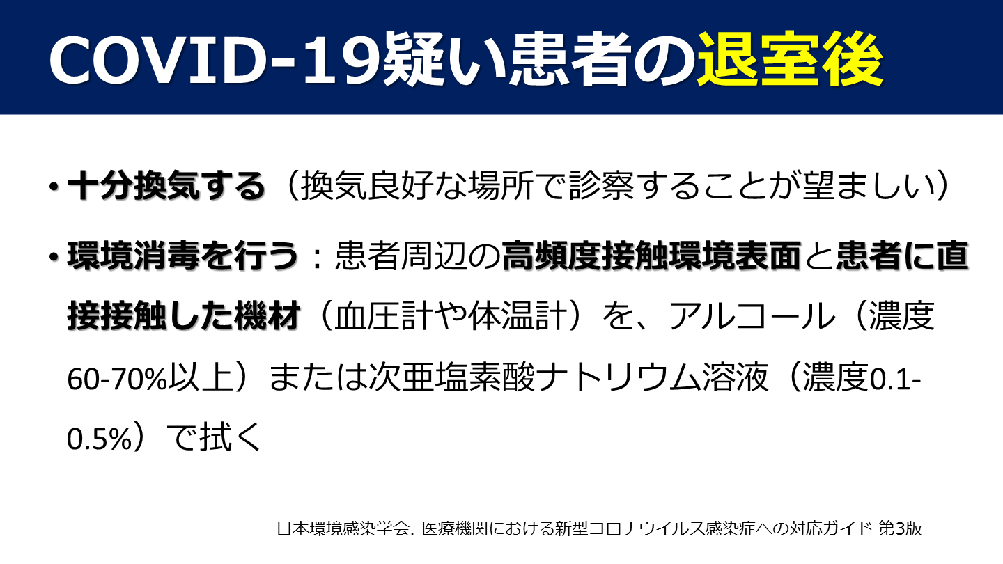 COVID-19疑い患者の退室後 十分換気する(換気良好な場所で診察することが望ましい)