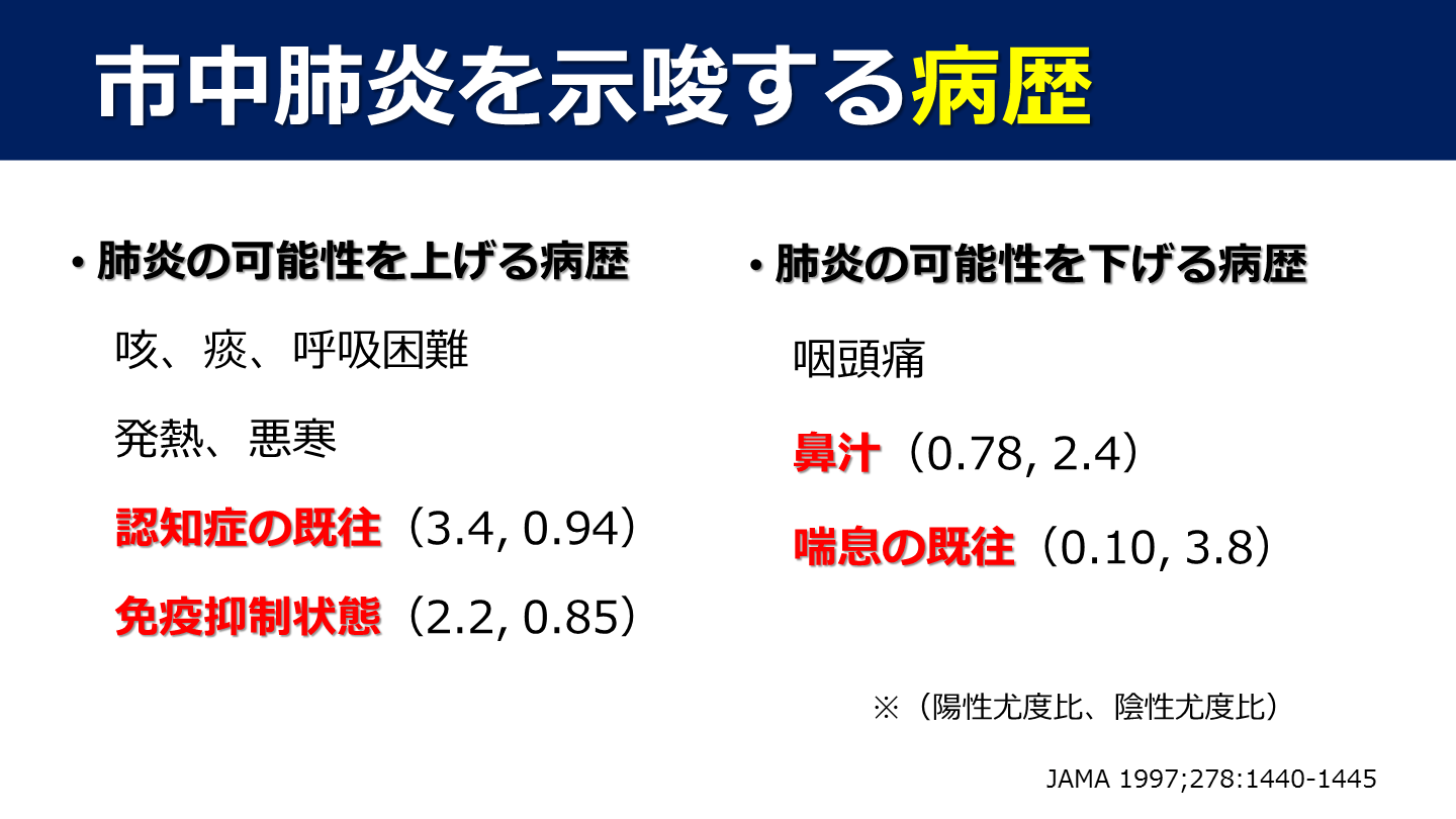 市中肺炎を示唆する病歴 肺炎の可能性を上げる病歴