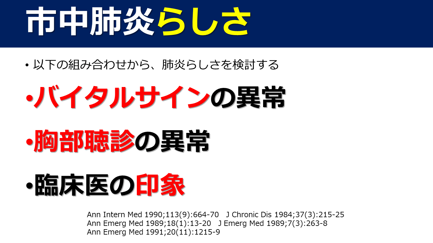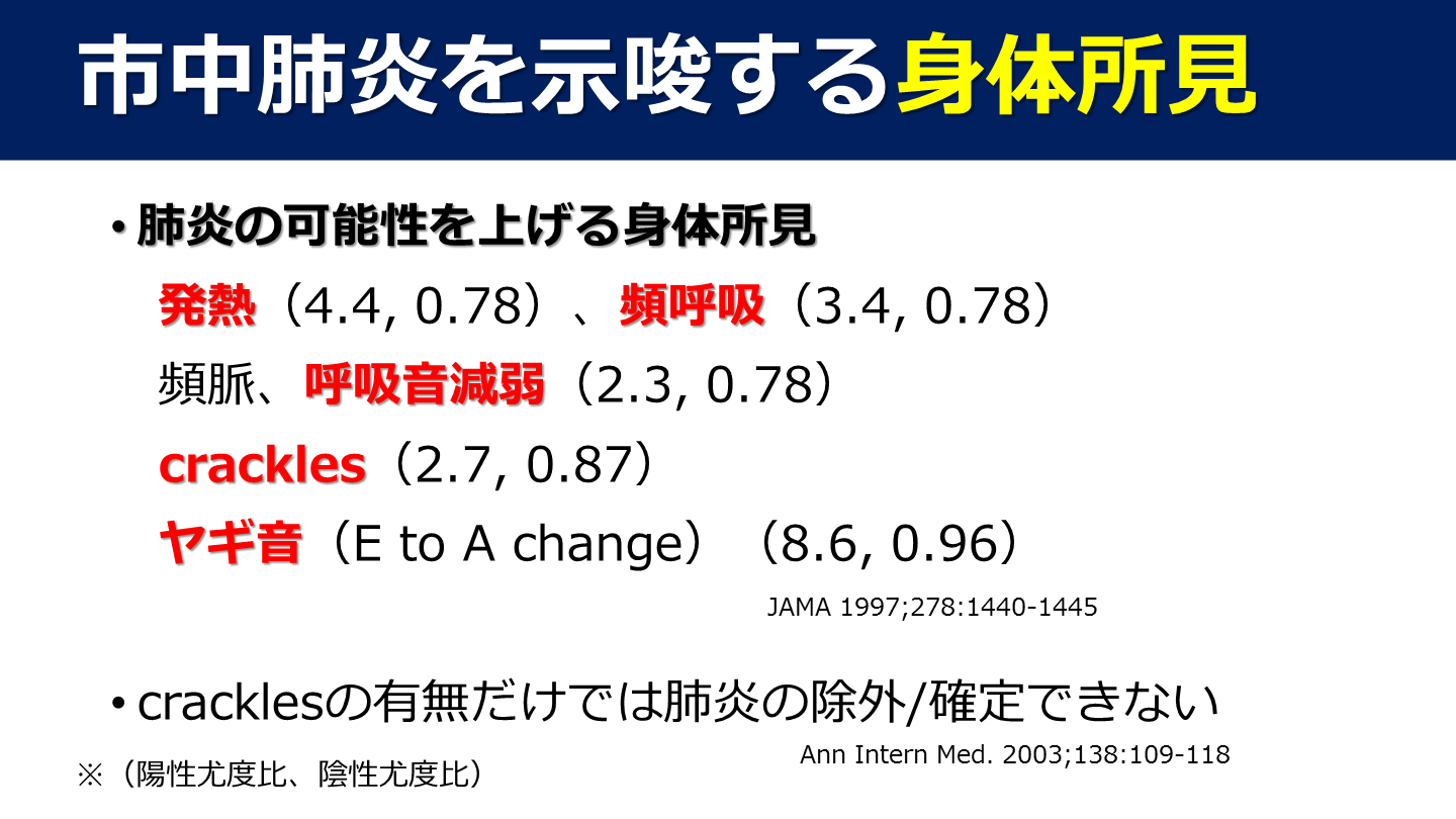 市中肺炎を示唆する身体所見 肺炎の可能性を上げる身体所見