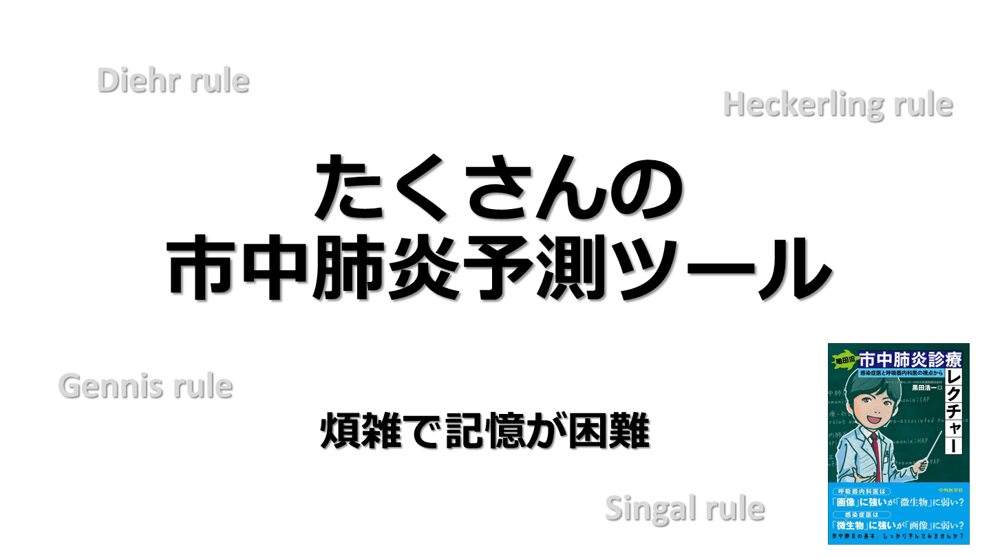 たくさんの市中肺炎予測ツール 煩雑で記憶が困難 Diehr rule Heckerling rule Gennis rule Singal rule #34.