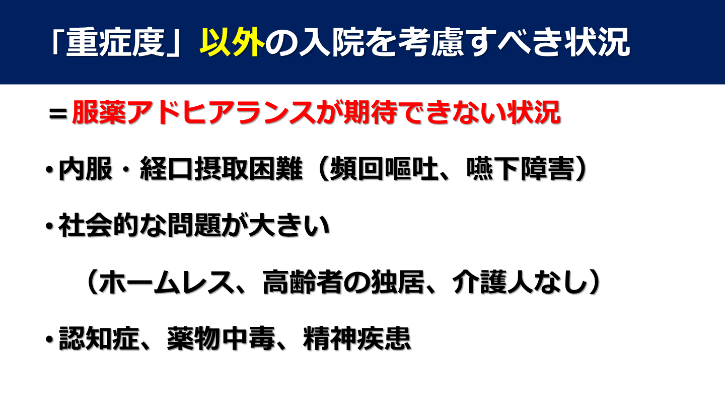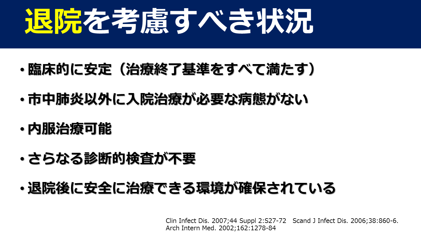 退院後に安全に治療できる環境が確保されている Clin Infect Dis. 2007;44 Suppl 2:S27-72 Scand J Infect Dis. 2006;38:860-6.