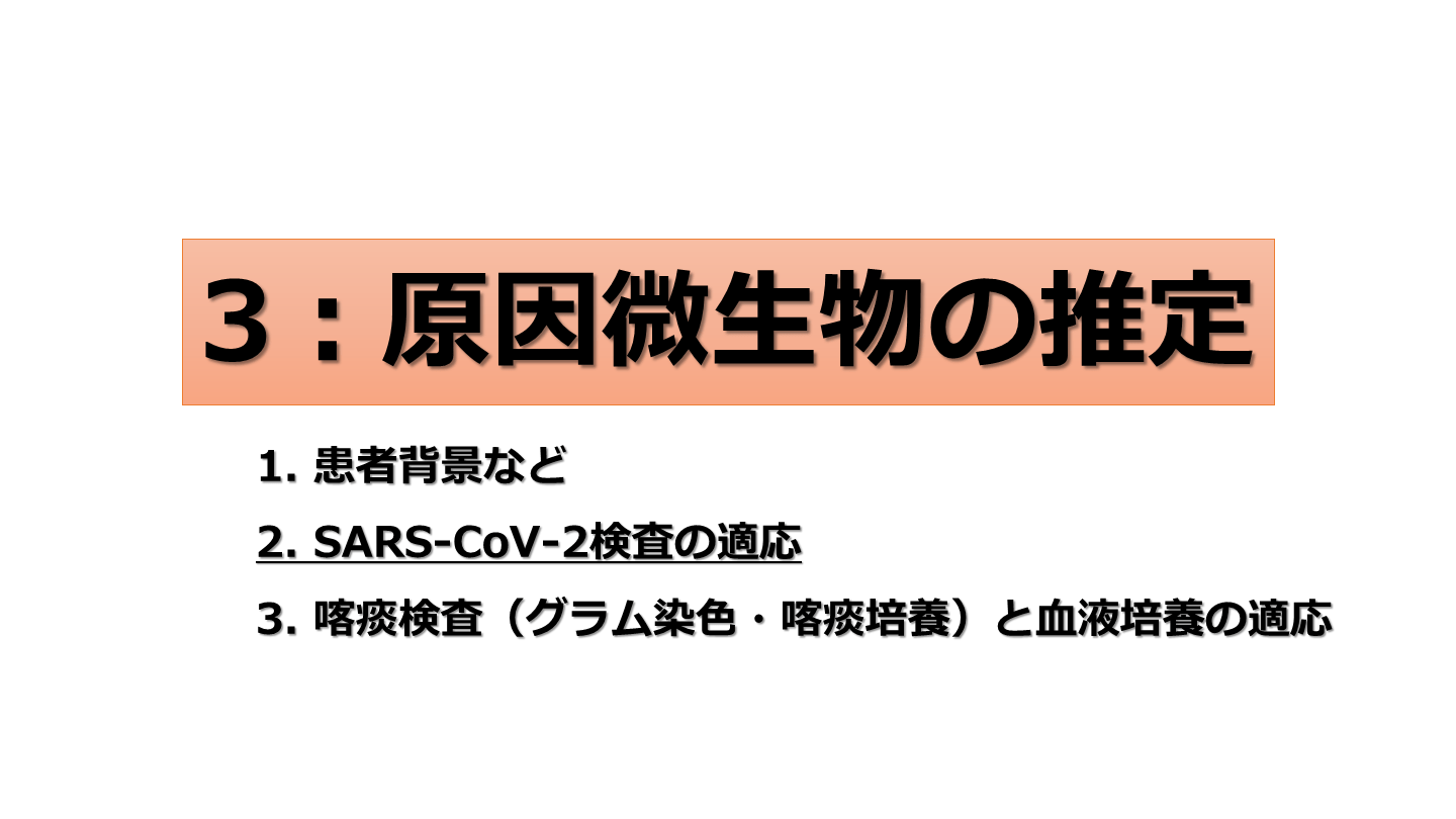 ⼀般社団法人 日本環境感染学会. 医療機関における新型コロナウイルス感染症への対応ガイド第3版. 22 市中肺炎の診断基準と検査 #23.