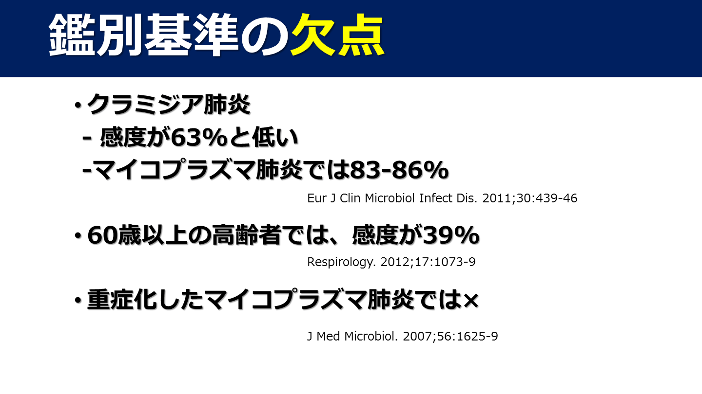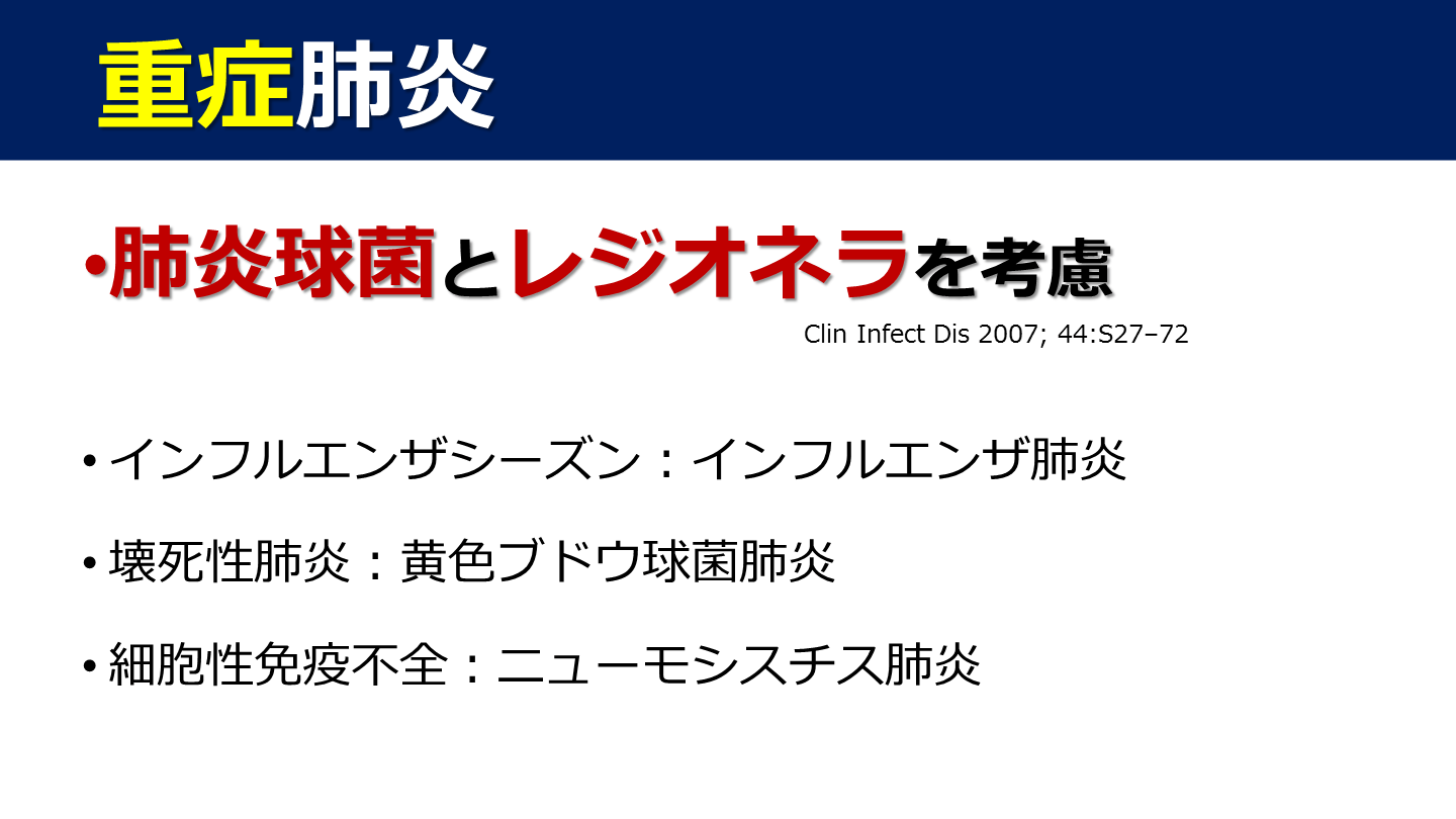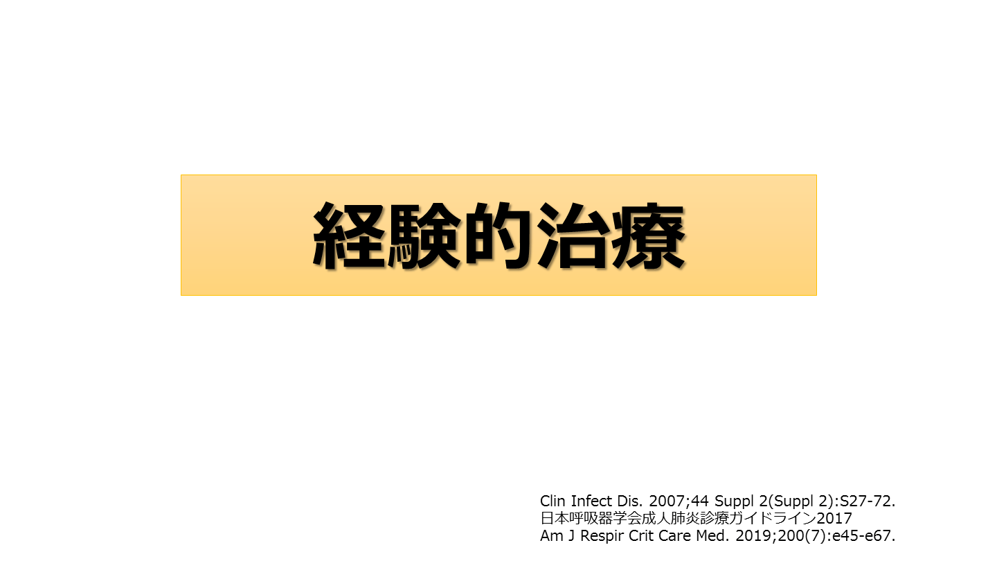経験的治療に反応しない場合の鑑別診断 日本呼吸器学会成人肺炎診療ガイドライン2017 Clin Infect Dis. 2007;44 Suppl 2:S27-72 #213.