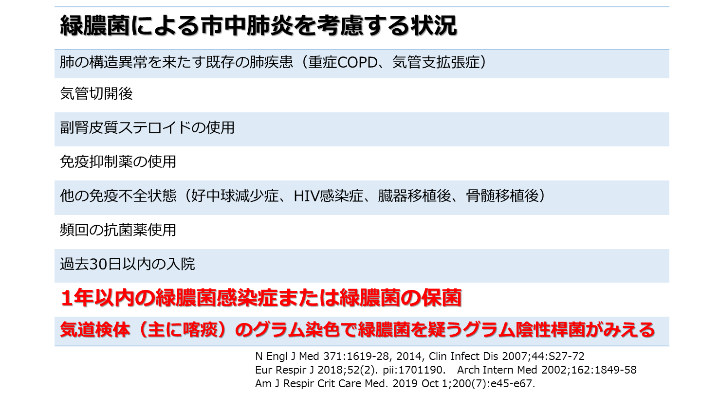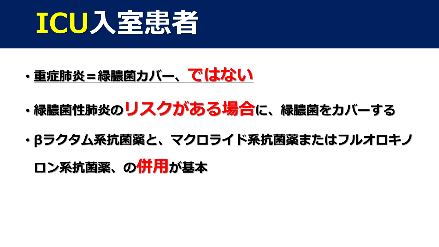 市中肺炎の治療で緑膿菌とMRSAをカバーする状況は少ない