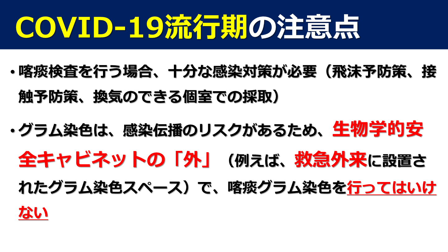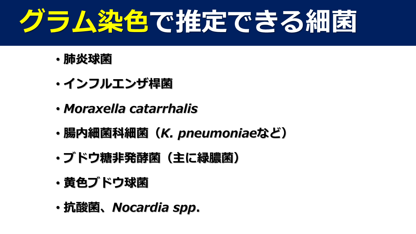 喀痰グラム染色は大切(COVID-19流行期はERで施行不可)