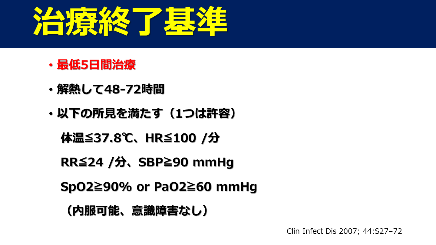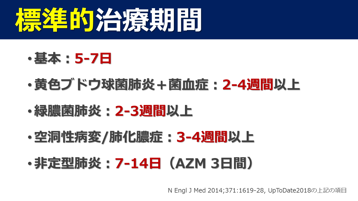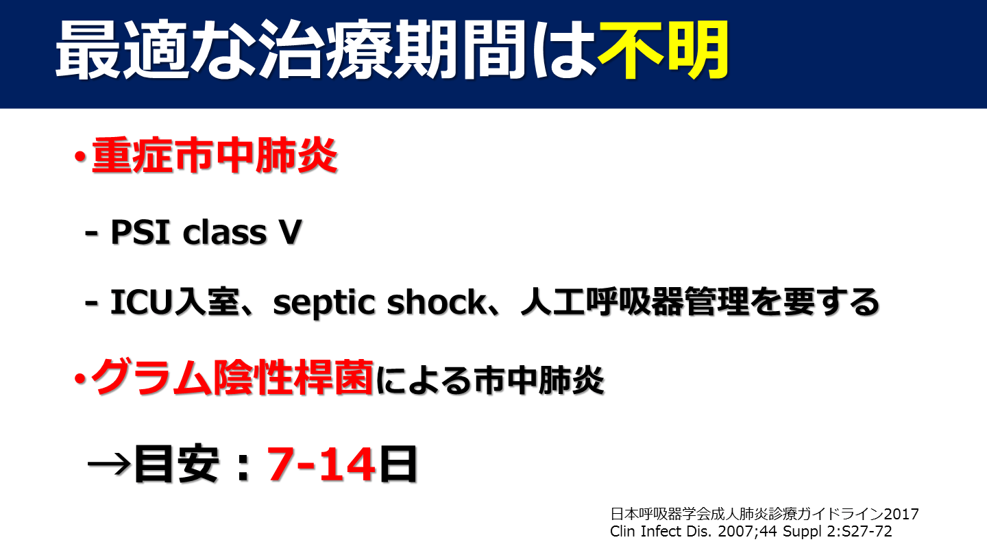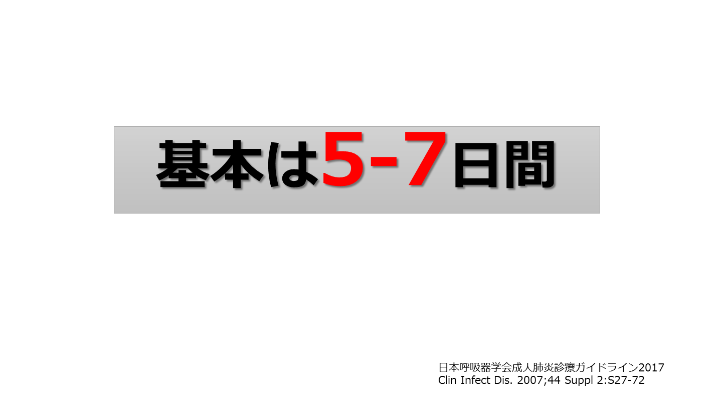 基本は5-7日間 日本呼吸器学会成人肺炎診療ガイドライン2017