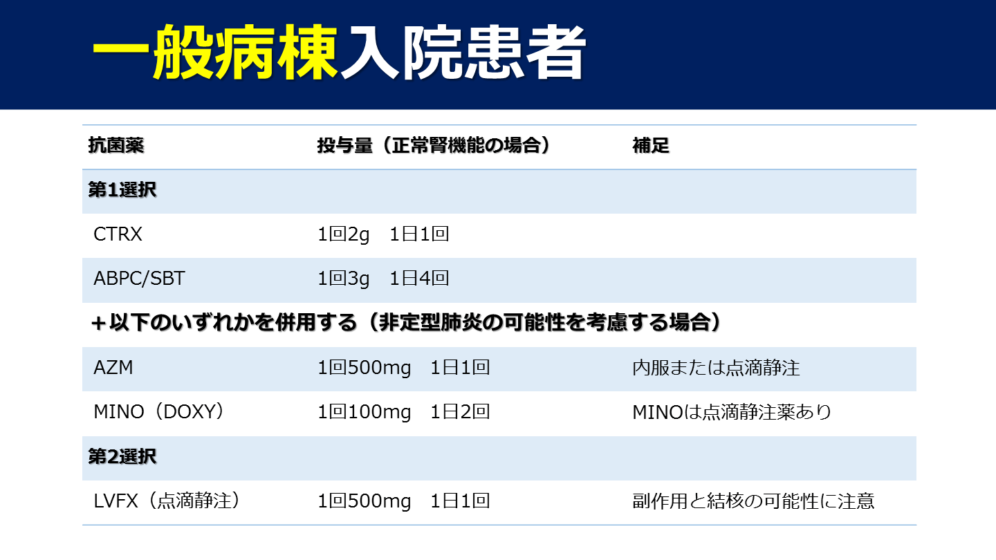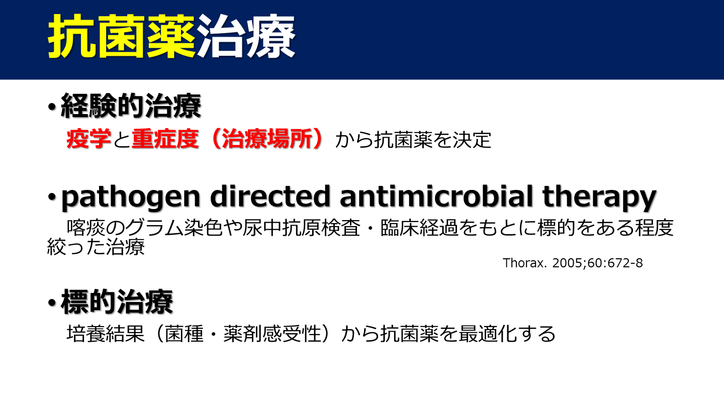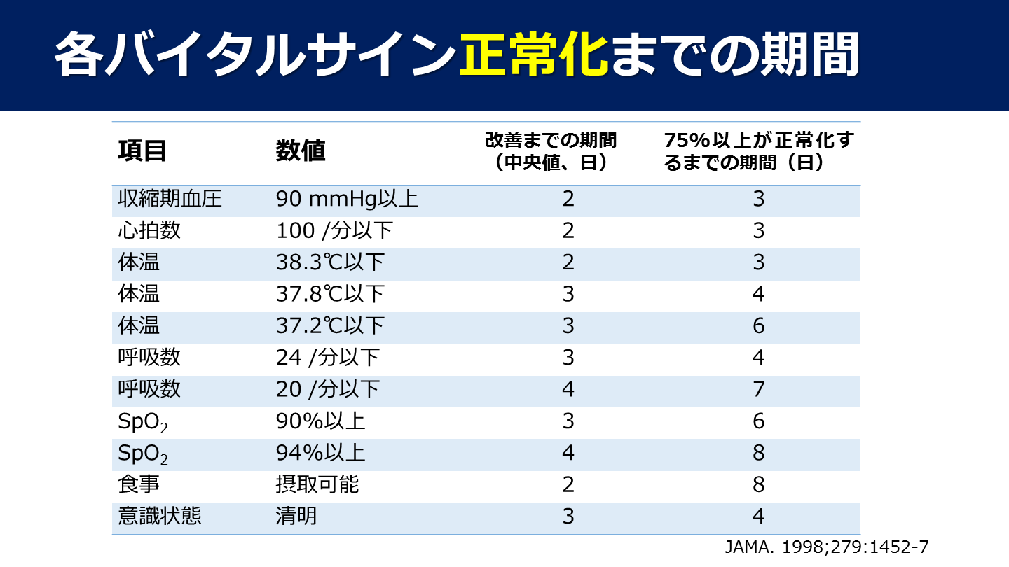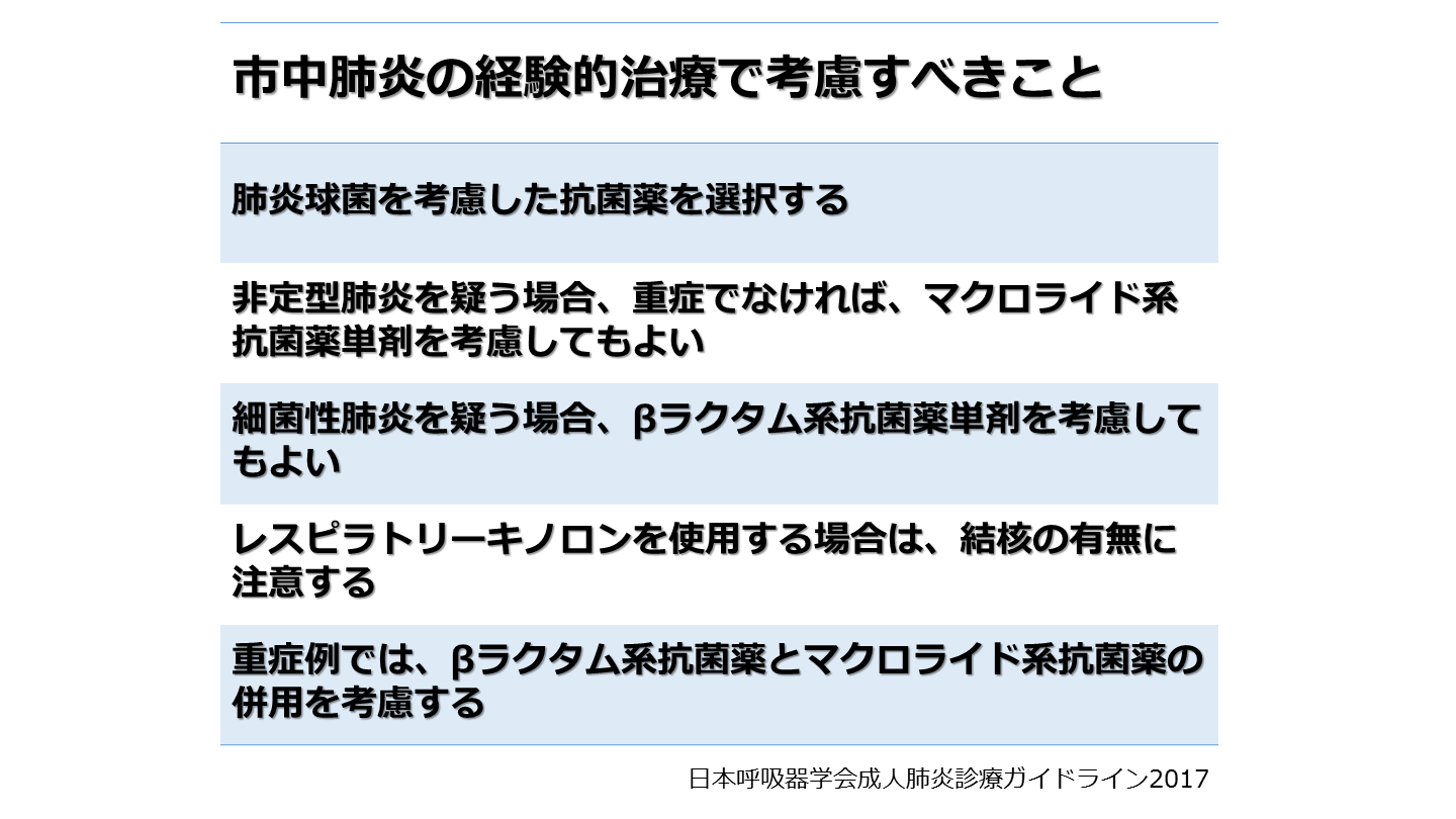 基本は5-7日間 日本呼吸器学会成人肺炎診療ガイドライン2017