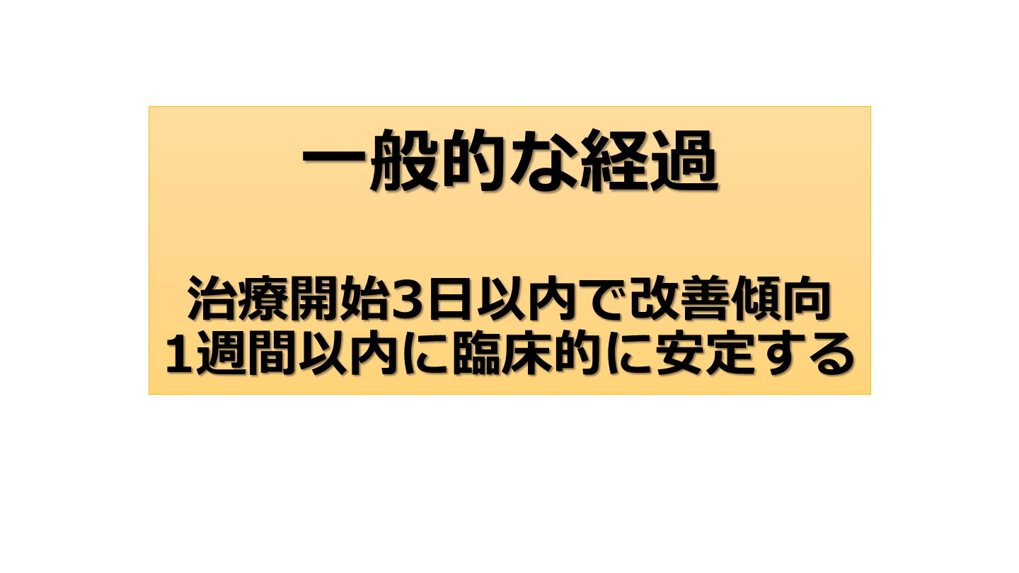 一般的な経過治療開始3日以内で改善傾向1週間以内に臨床的に安定する #196.
