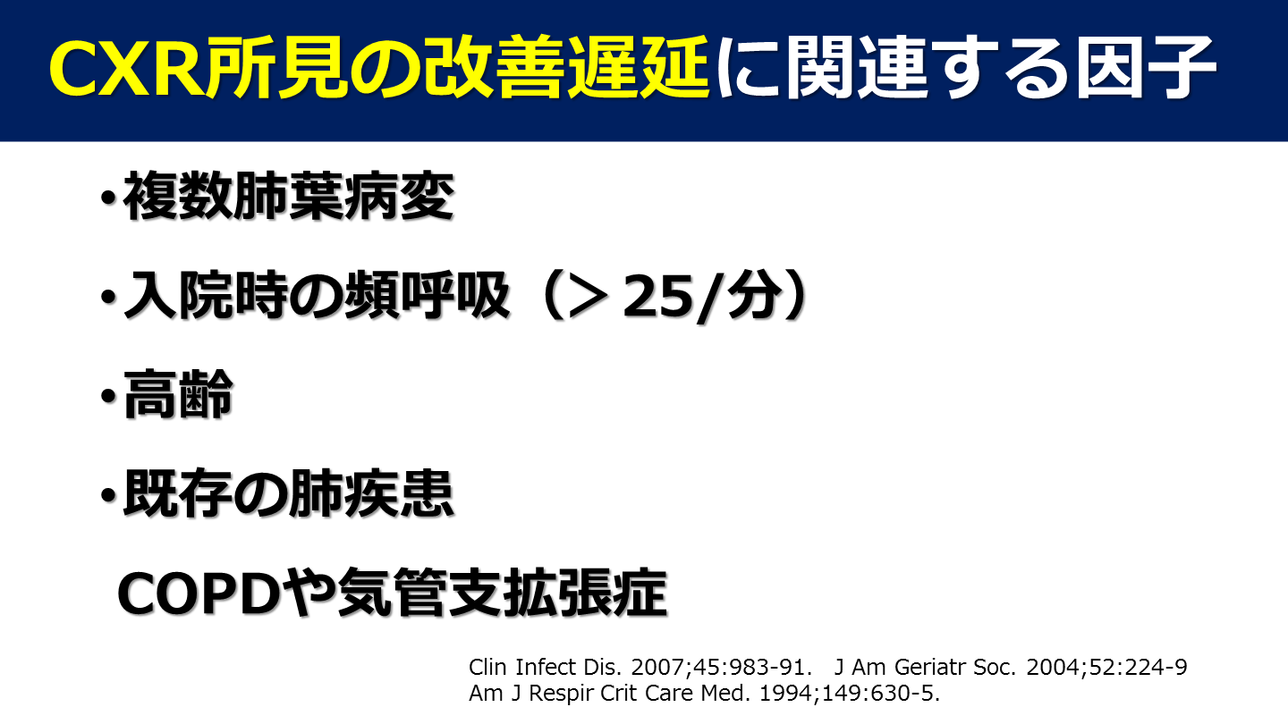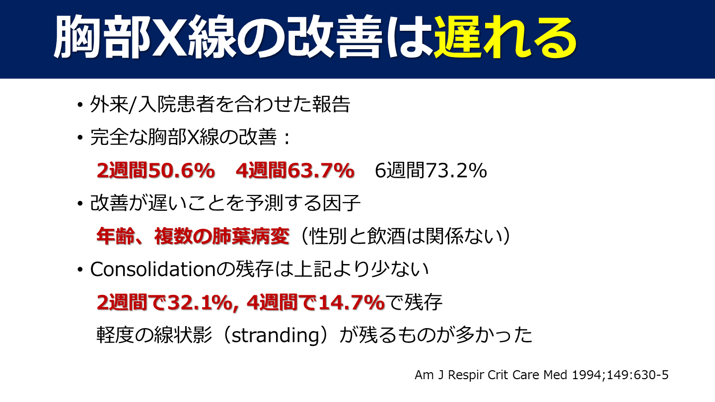 胸部単純X線所見の改善は臨床症状の改善より緩徐である #201.