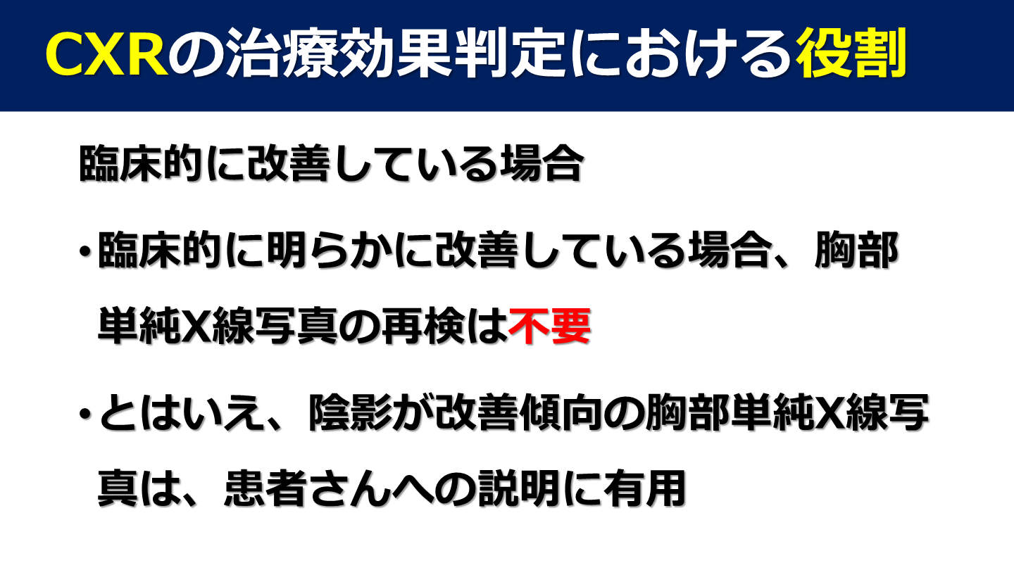 CXRの治療効果判定における役割 臨床的に改善している場合