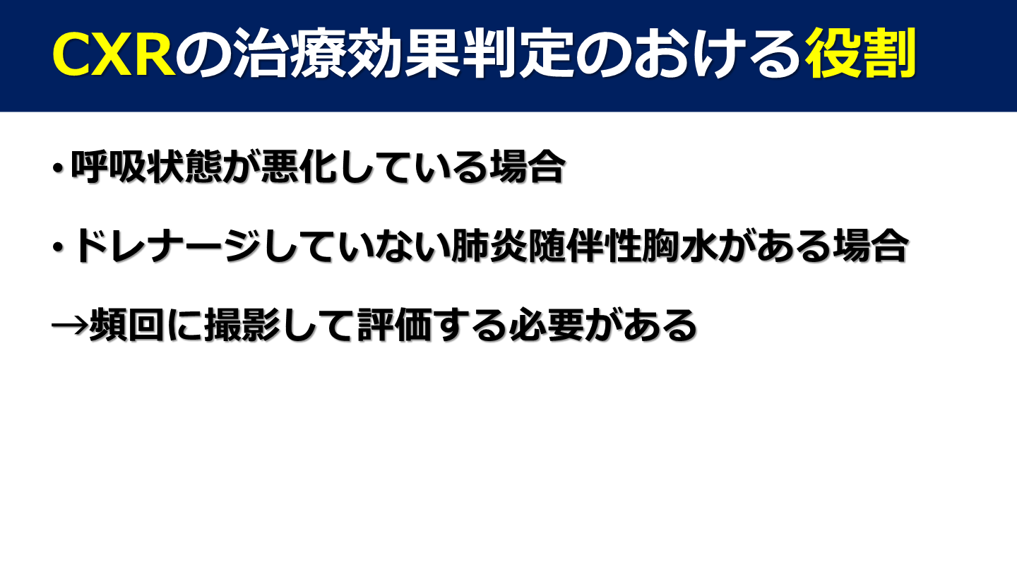 CXRの治療効果判定のおける役割 呼吸状態が悪化している場合