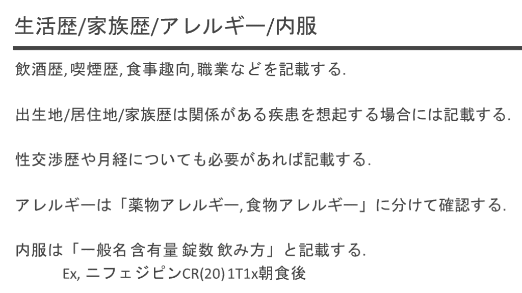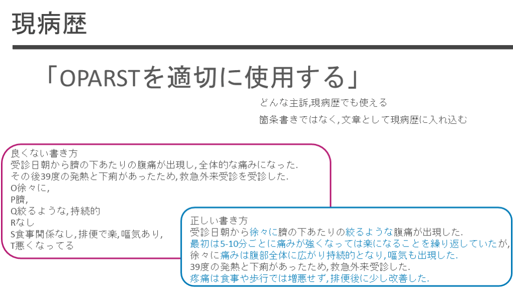 どんな主訴,現病歴でも使える 箇条書きではなく, 文章として現病歴に入れ込む 良くない書き方