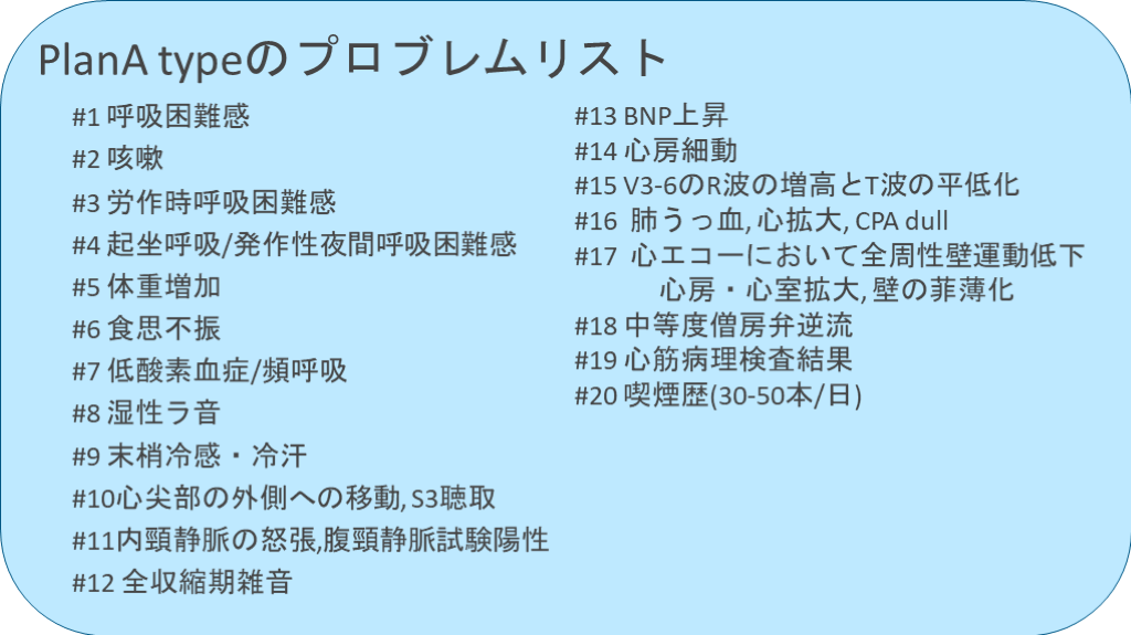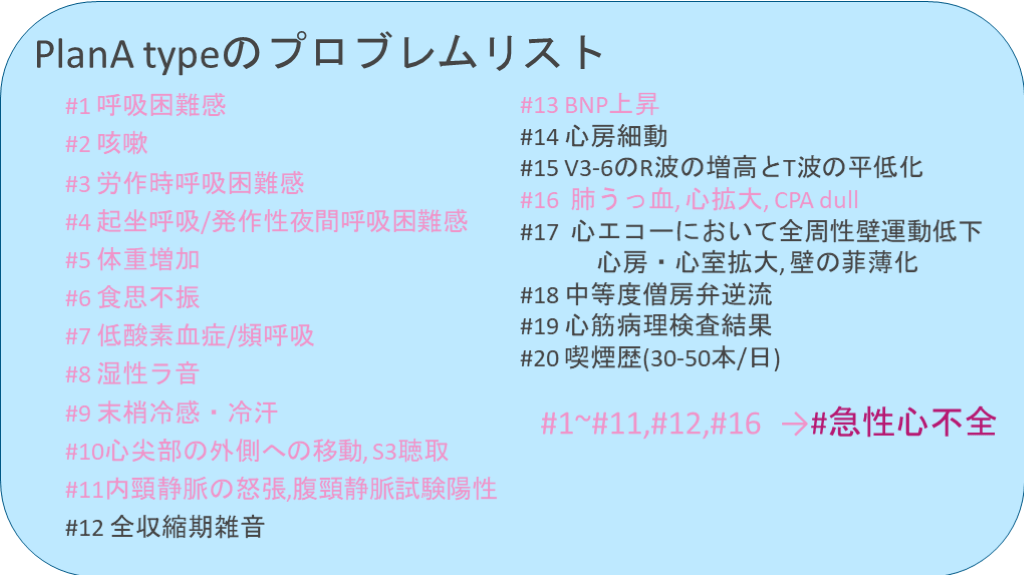 #12 全収縮期雑音 PlanA typeのプロブレムリスト #13 BNP上昇