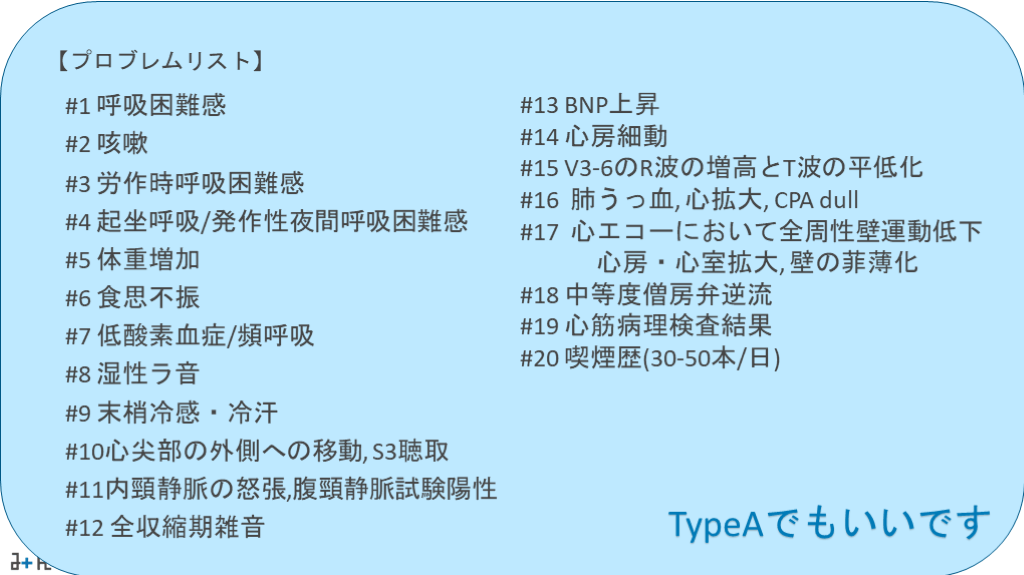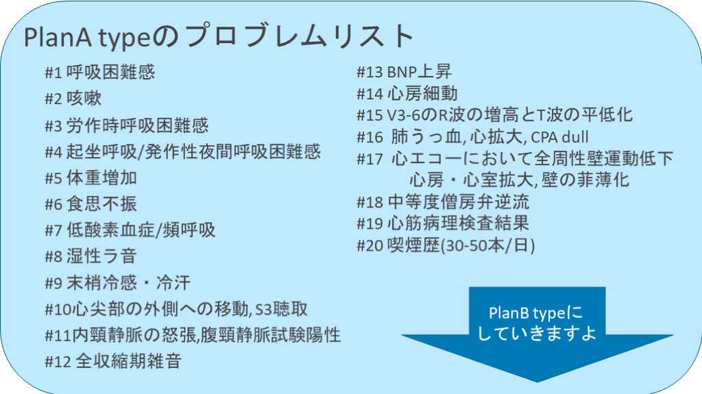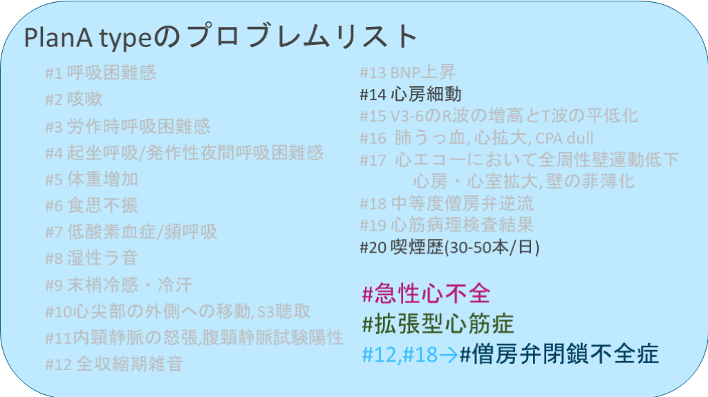 #43. PlanB typeのプロブレムリスト #急性心不全 #拡張型心筋症 #僧房弁閉鎖不全症 #心房細動 #喫煙歴 PlanBは
