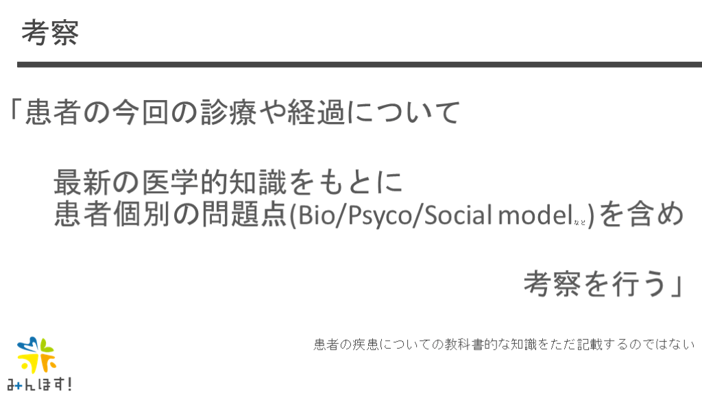 患者の疾患についての教科書的な知識をただ記載するのではない