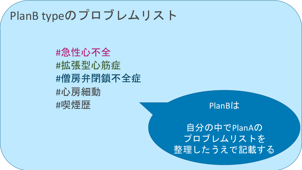 #45. PlanB typeのプロブレムリスト #急性心不全 #拡張型心筋症 #僧房弁閉鎖不全症 #心房細動 #喫煙歴 PlanBは 自分の中でPlanAの プロブレムリストを 整理したうえで記載する