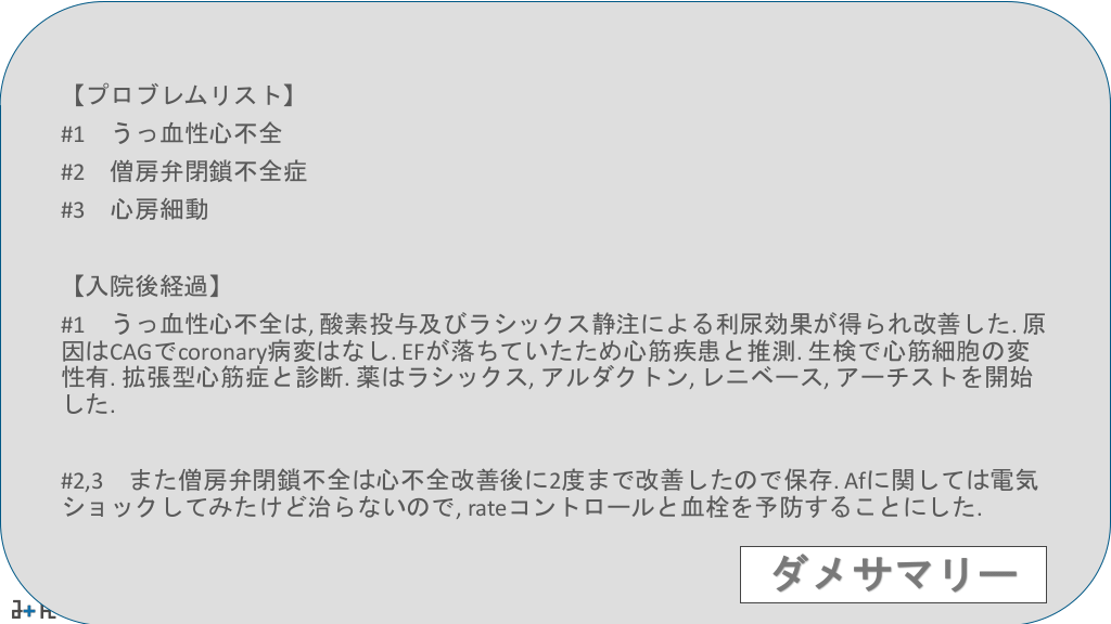 心不全の症例とダメサマリー