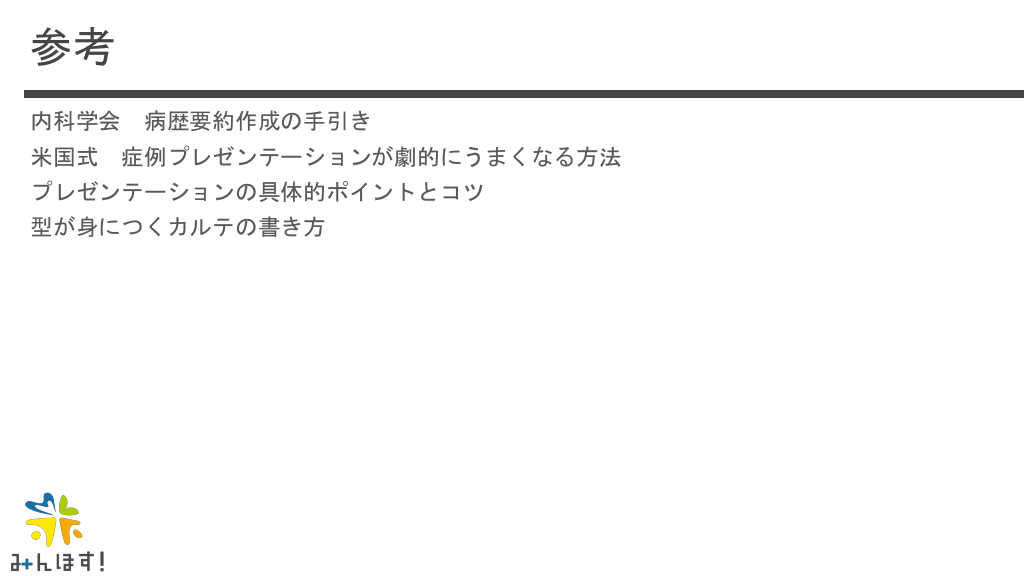 #55. 参考 内科学会 病歴要約作成の手引き 米国式 症例プレゼンテーションが劇的にうまくなる方法 プレゼンテーションの具体的ポイントとコツ 型が身につくカルテの書き方
