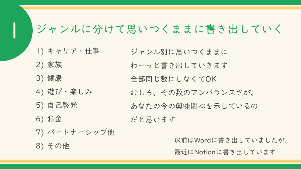 #8. ジャンルに分けて思いつくままに書き出していく キャリア・仕事