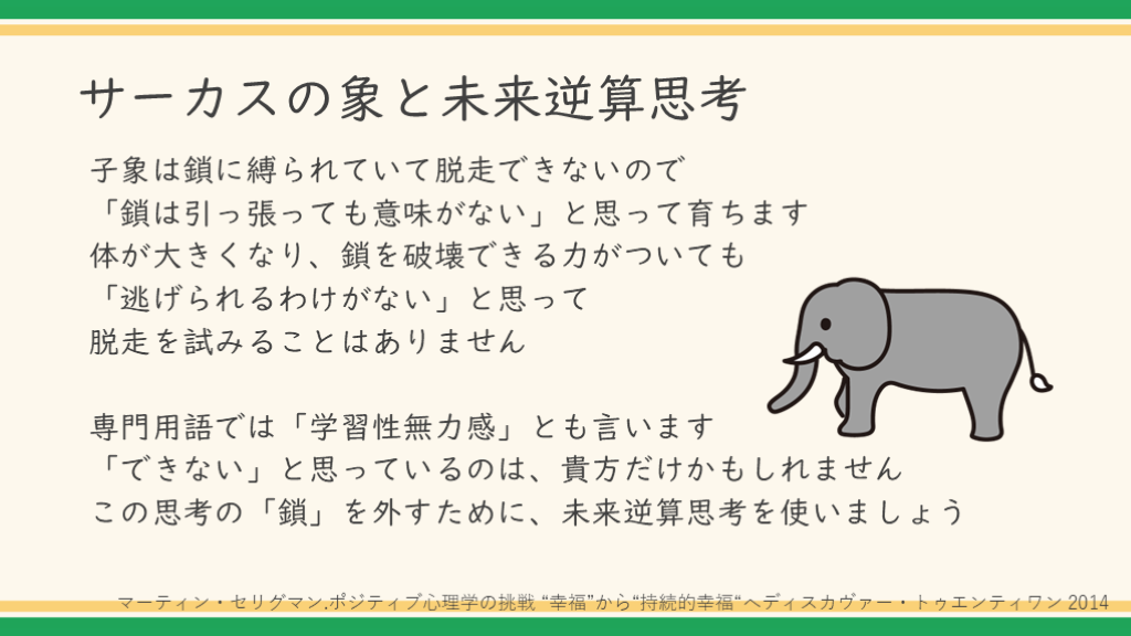 #13. サーカスの象と未来逆算思考 子象は鎖に縛られていて脱走できないので