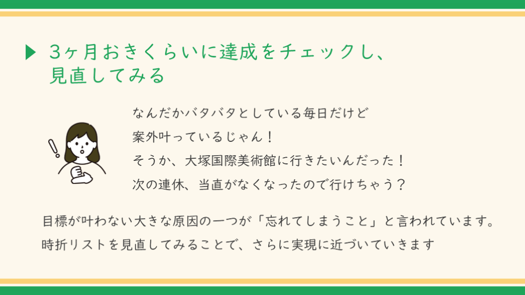 #15. 3ヶ月おきくらいに達成をチェックし、