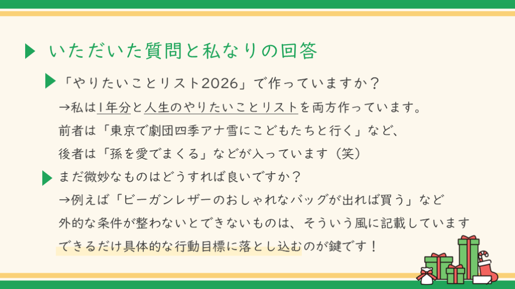 #17. いただいた質問と私なりの回答 「やりたいことリスト2026」で作っていますか?