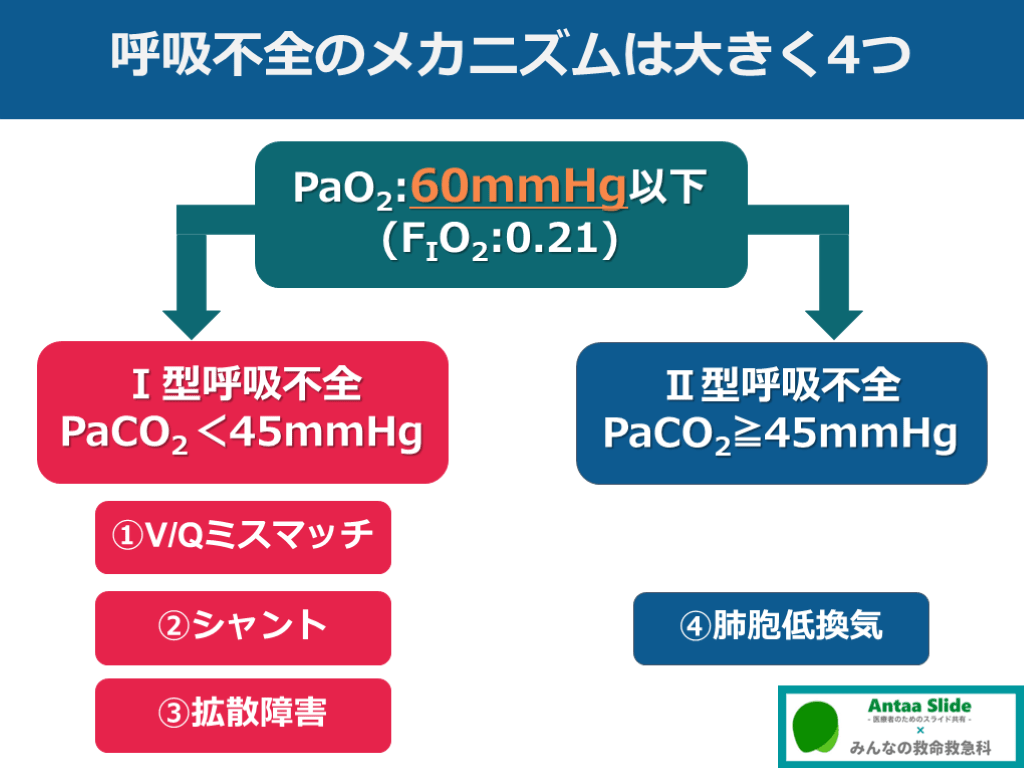 #18. 呼吸不全のメカニズムは大きく4つ PaO2:60mmHg以下