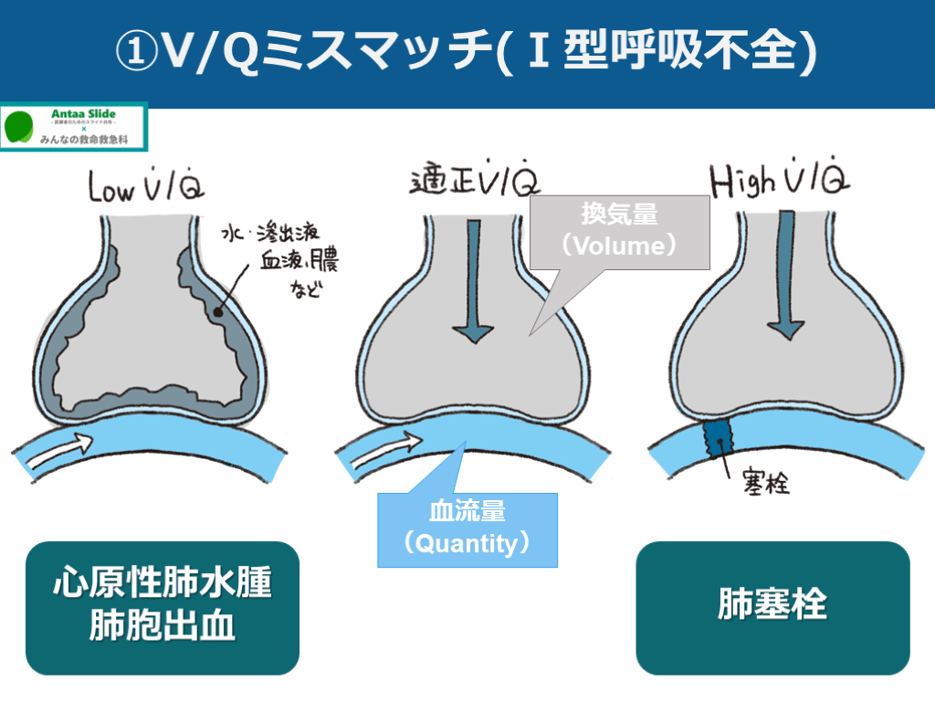 #20. ①V/Qミスマッチ(Ⅰ型呼吸不全) 血流量(Quantity) 換気量