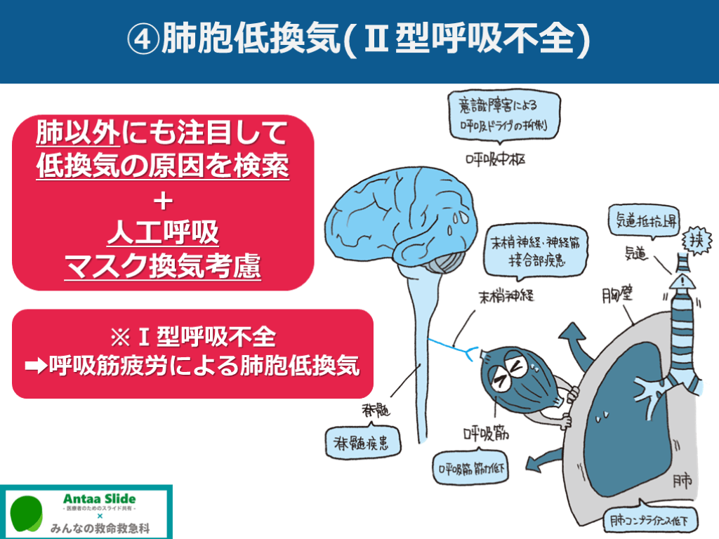 #25. ④肺胞低換気(Ⅱ型呼吸不全) 肺以外にも注目して