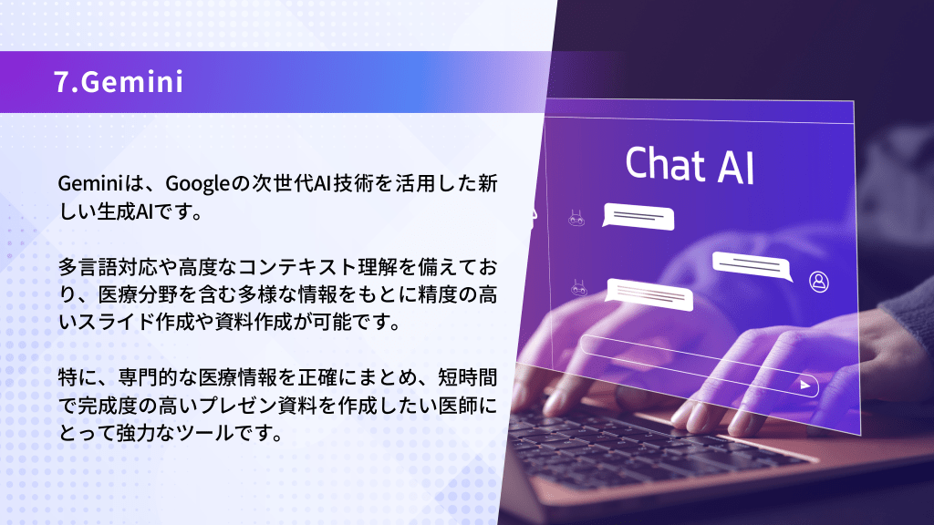 7.Gemini:次世代AI技術を使った高度なプレゼン作成が可能