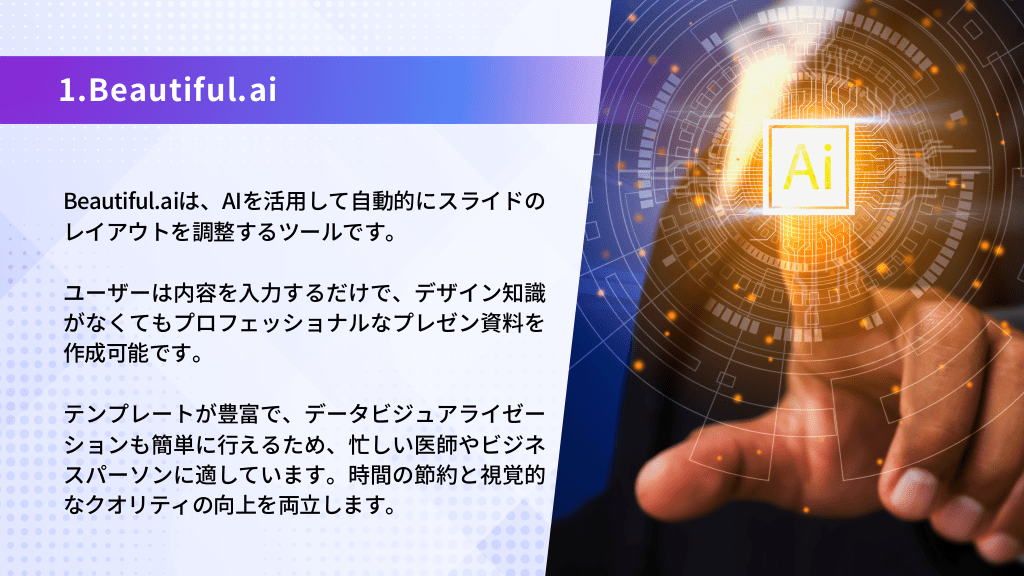 1.Beautiful.ai:自動で美しいレイアウトを提供し、デザインの手間を軽減