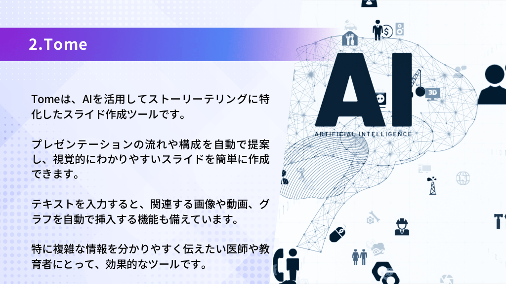2.Tome:AIがストーリーテリングを自動化、わかりやすい構成を作成