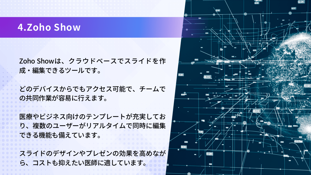4.Zoho Show:クラウドベースでリアルタイム共同編集が可能