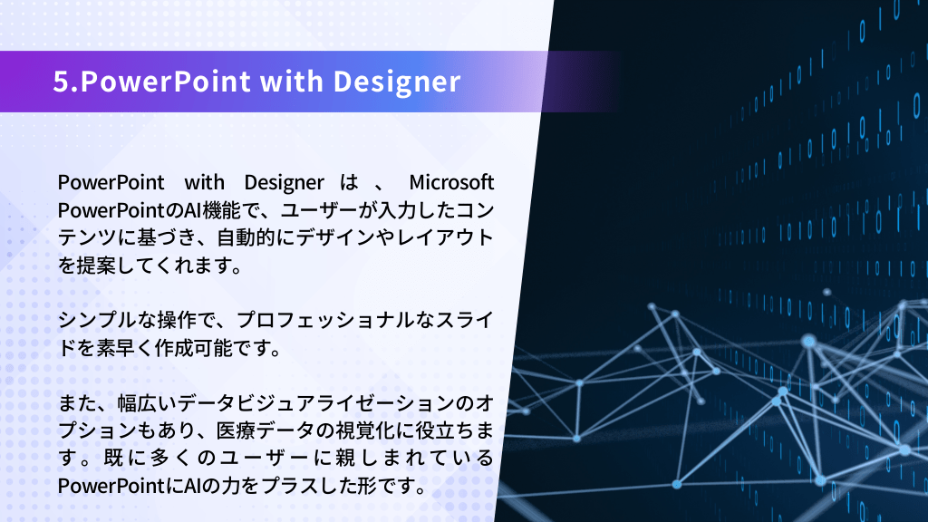 5.PowerPoint with Designer:AIがデザインを自動提案し、PowerPointとの連携が便利