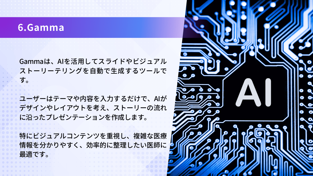 6.Gamma:AIが自動でスライドを生成、ビジュアル重視のプレゼン作成が可能