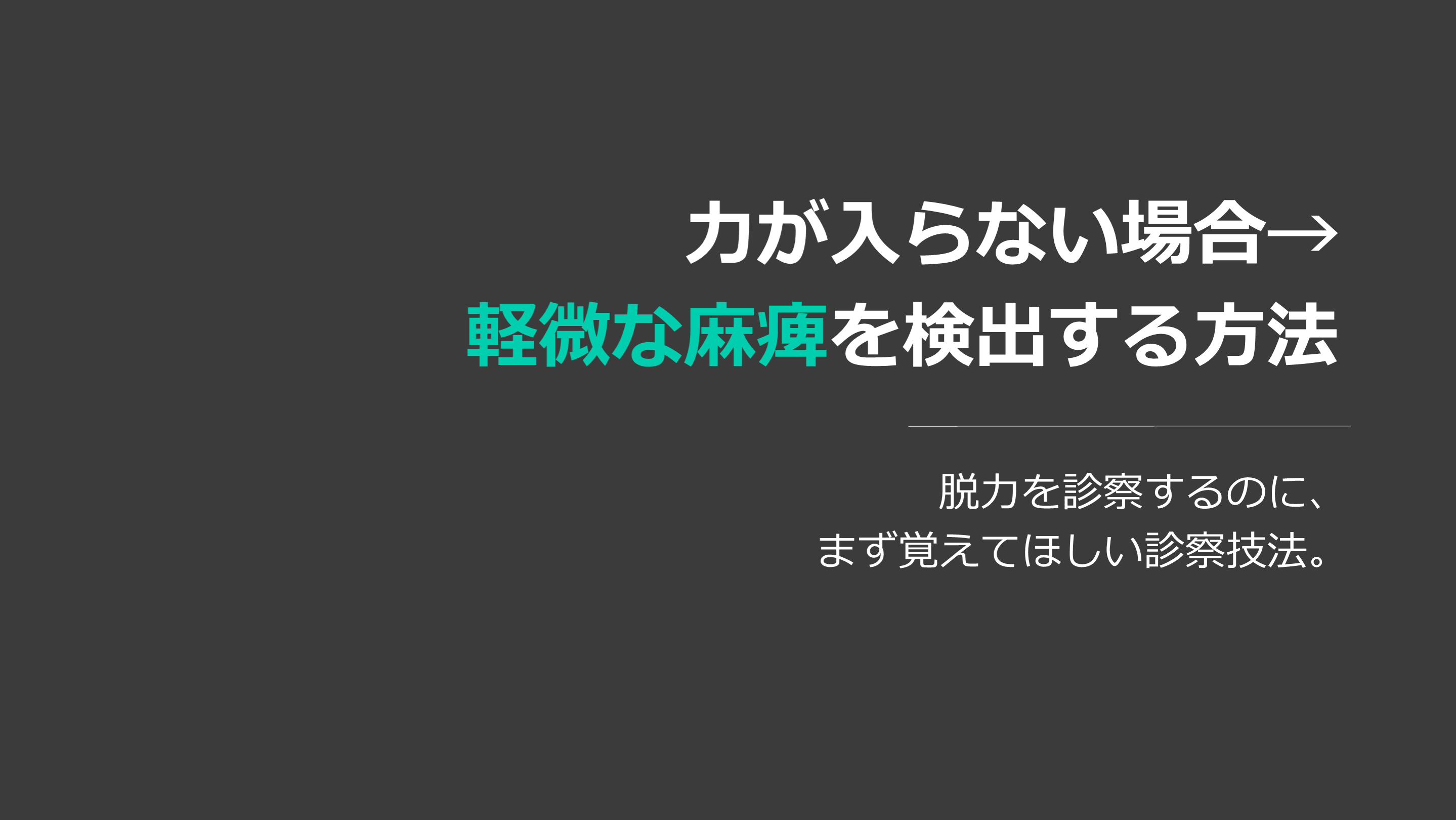 これら試験の名称については色々意見があるところですが、ここではわかりやすさを重視して上記の記載を採用しています。 力が入らない場合→軽微な麻痺を検出する方法