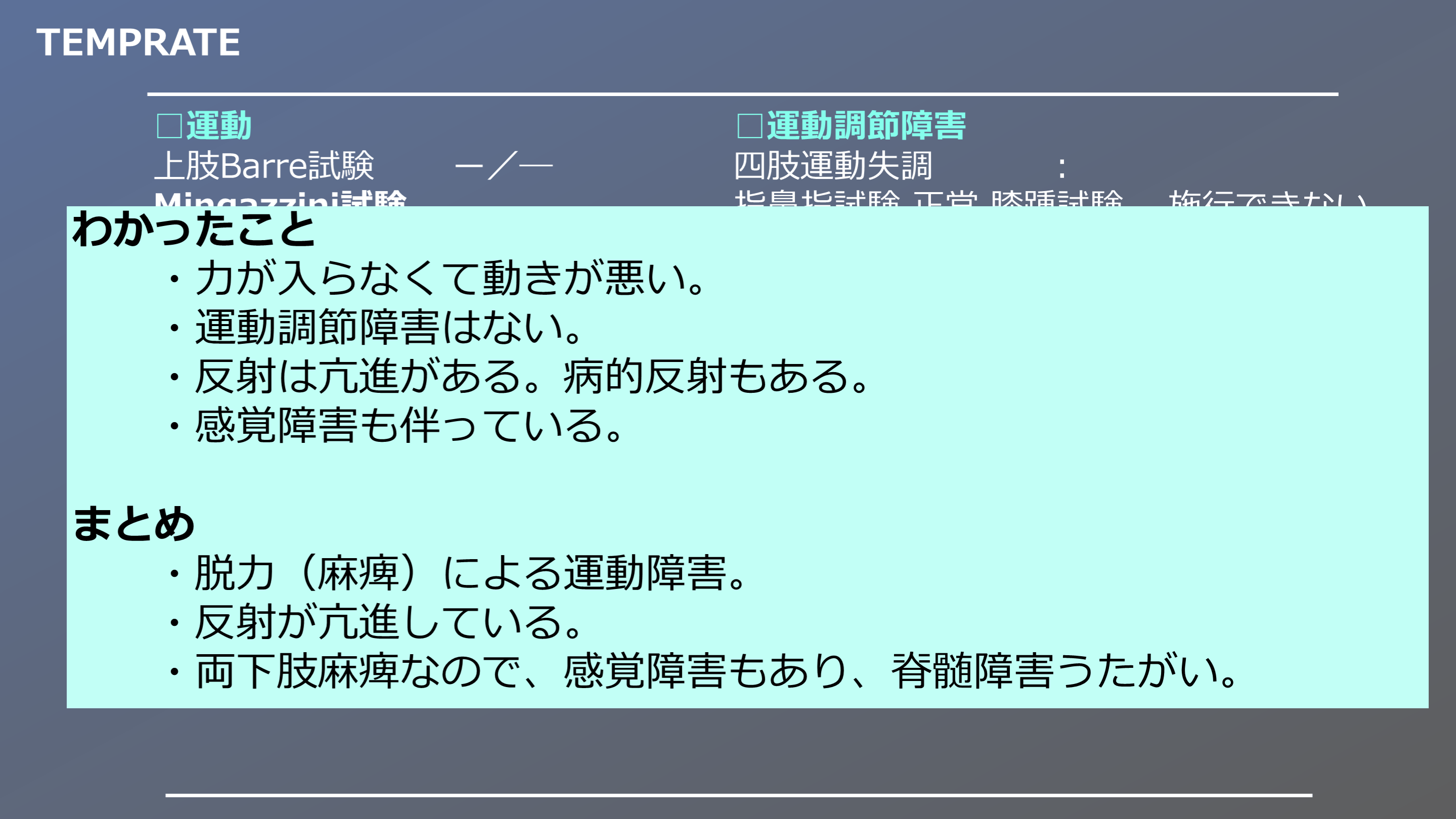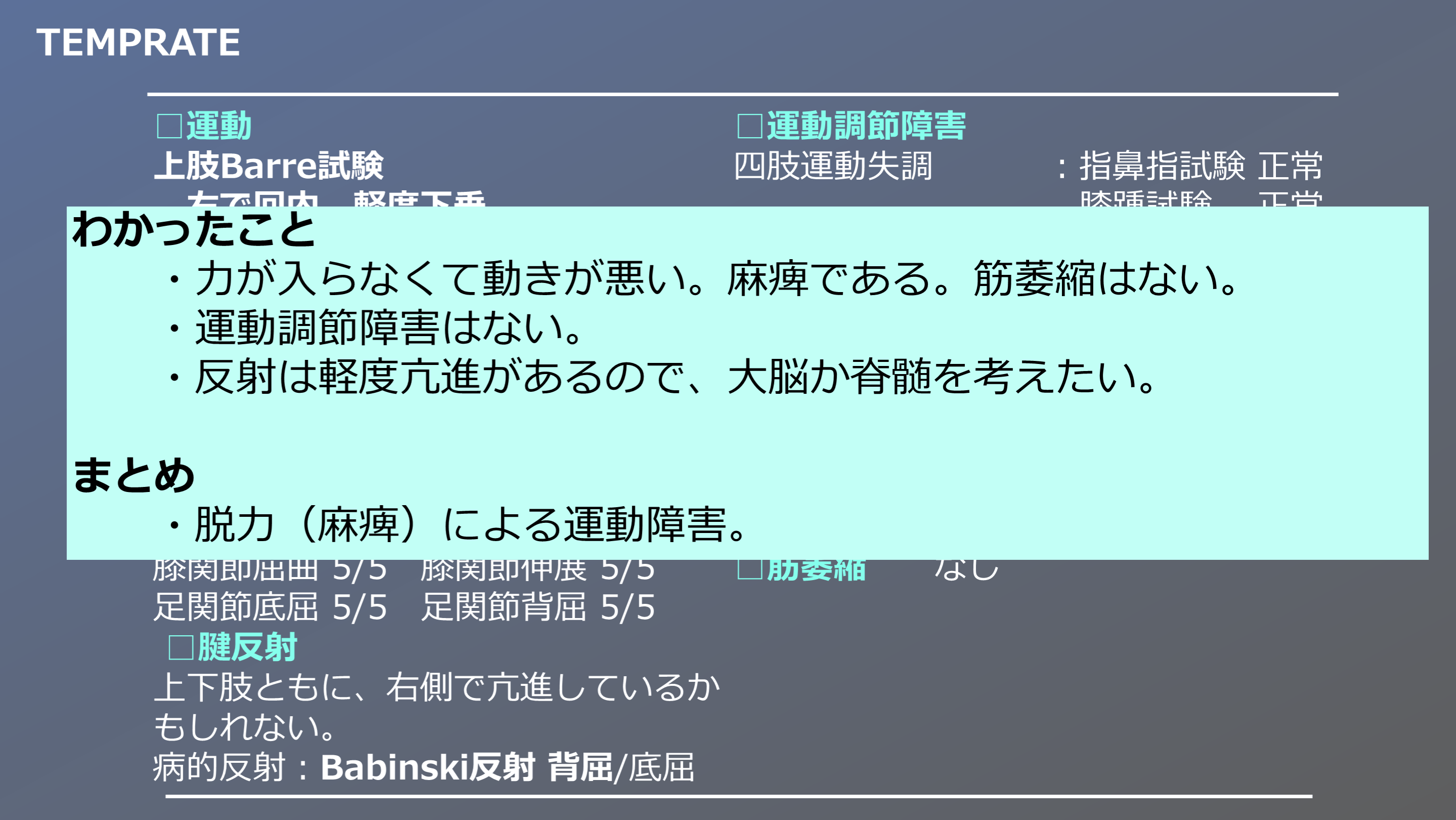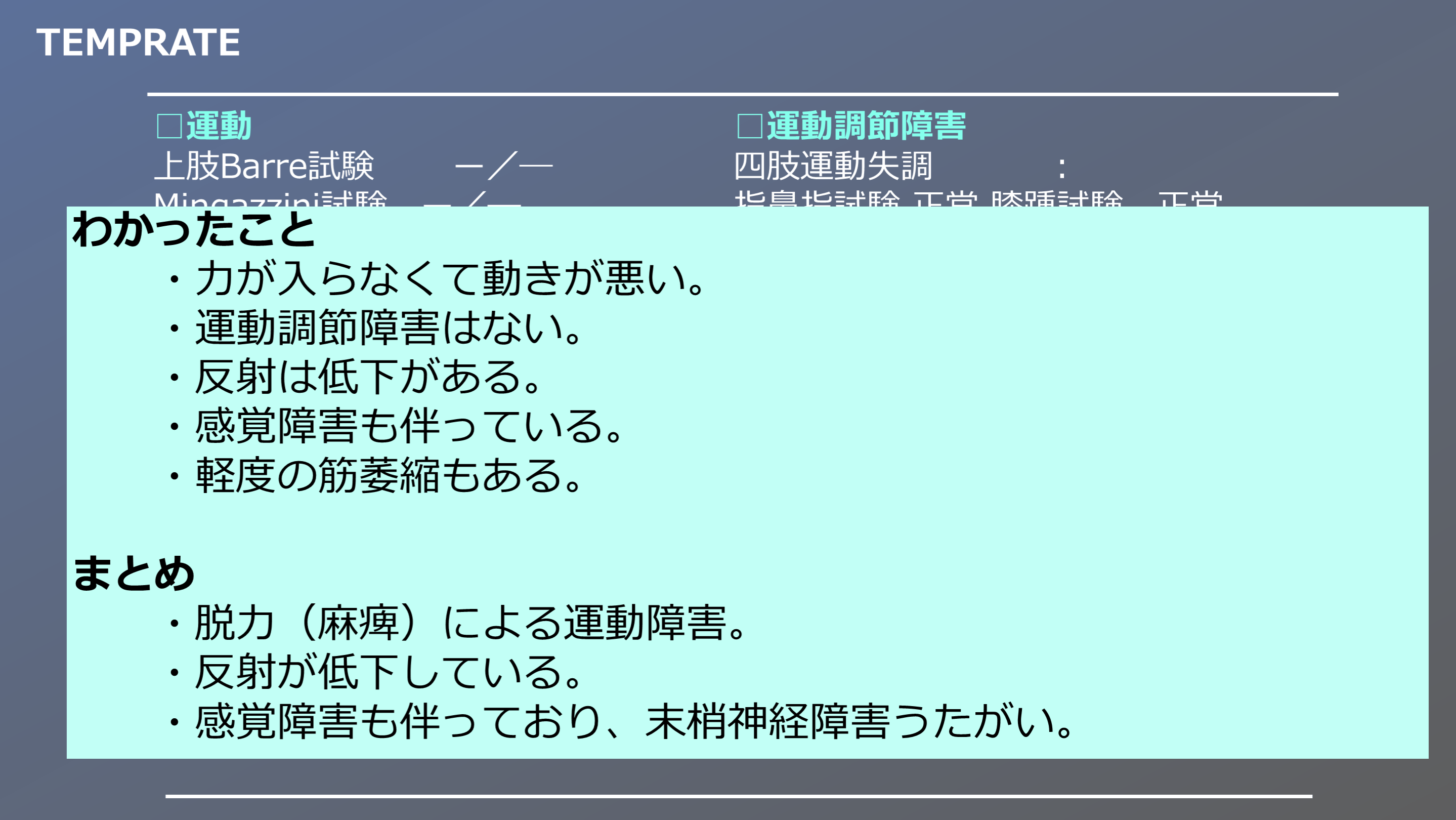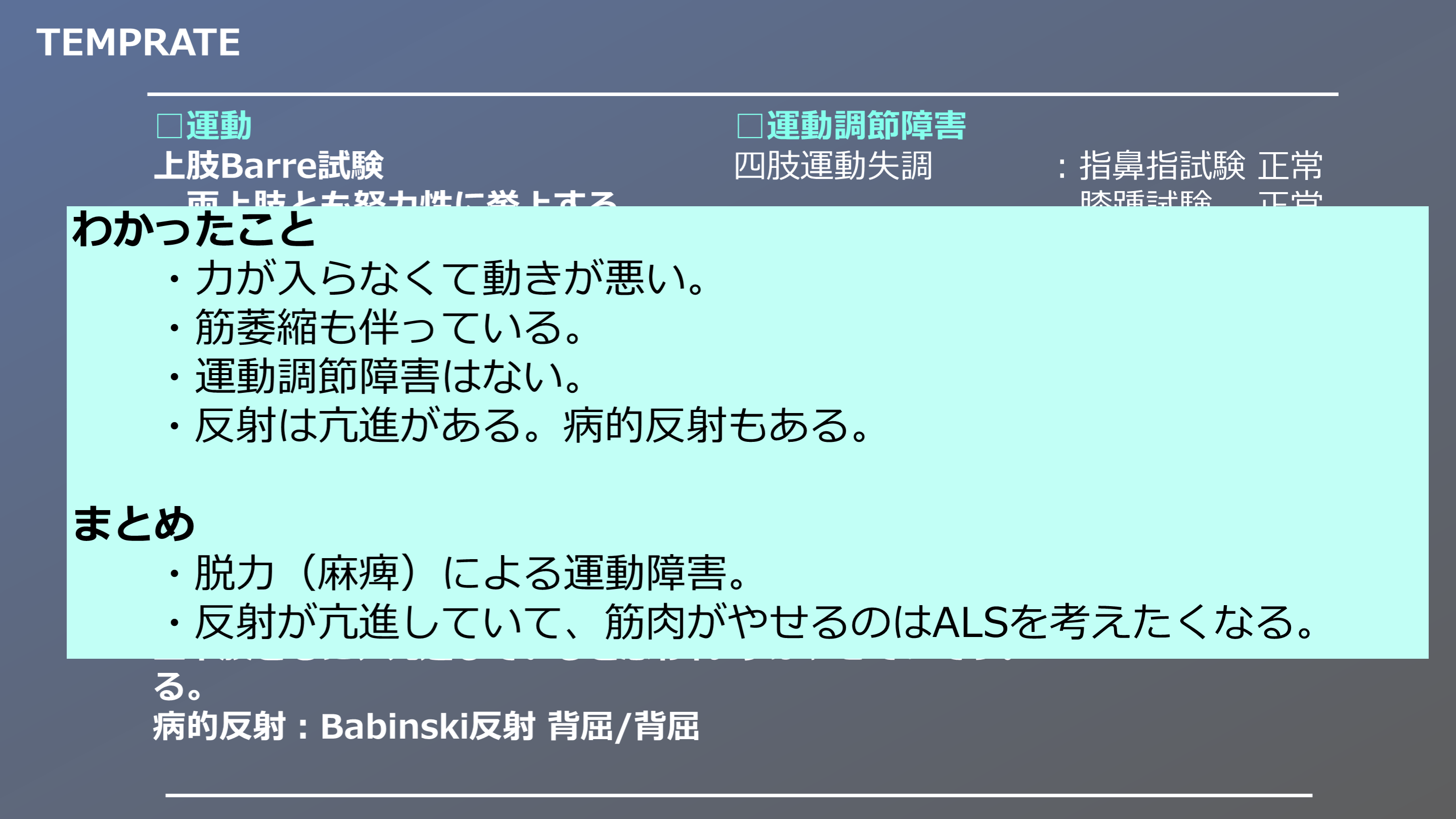 □筋萎縮 上下肢軽度筋萎縮ありそう。 TEMPRATE わかったこと