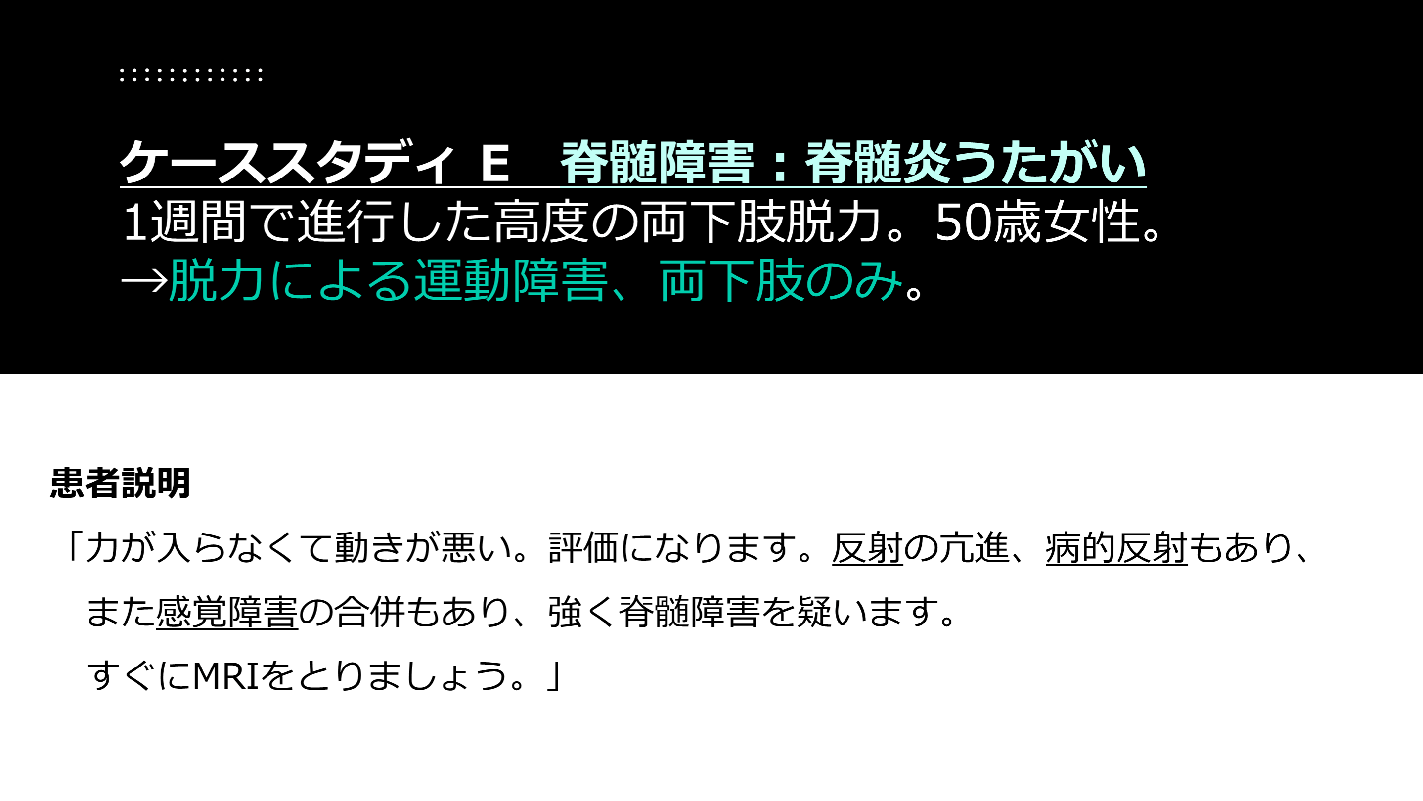すぐにMRIをとりましょう。」 ケーススタディ E 脊髄障害:脊髄炎うたがい