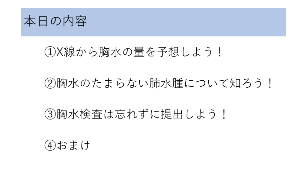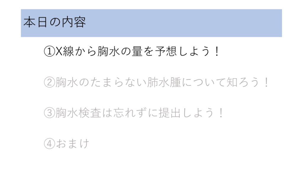 ①胸部X線・CTから胸水の量を予想しよう!
