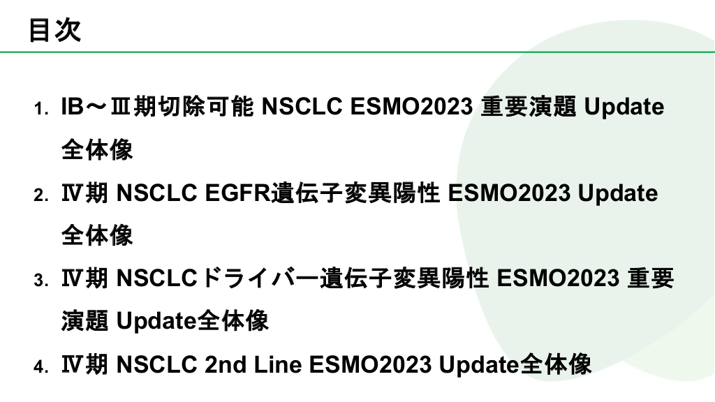 ・Ⅳ期 NSCLC EGFR遺伝子変異陽性 ESMO2023 Update全体像